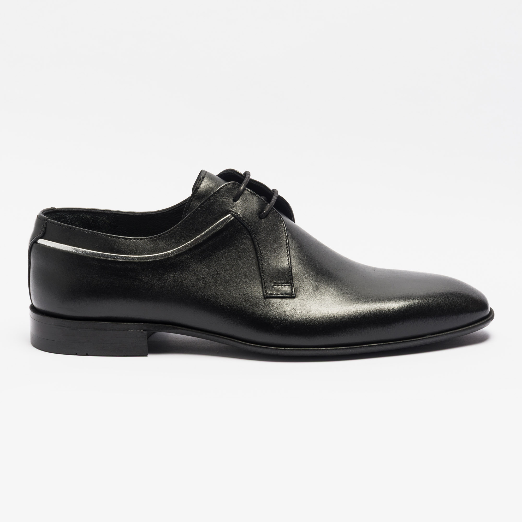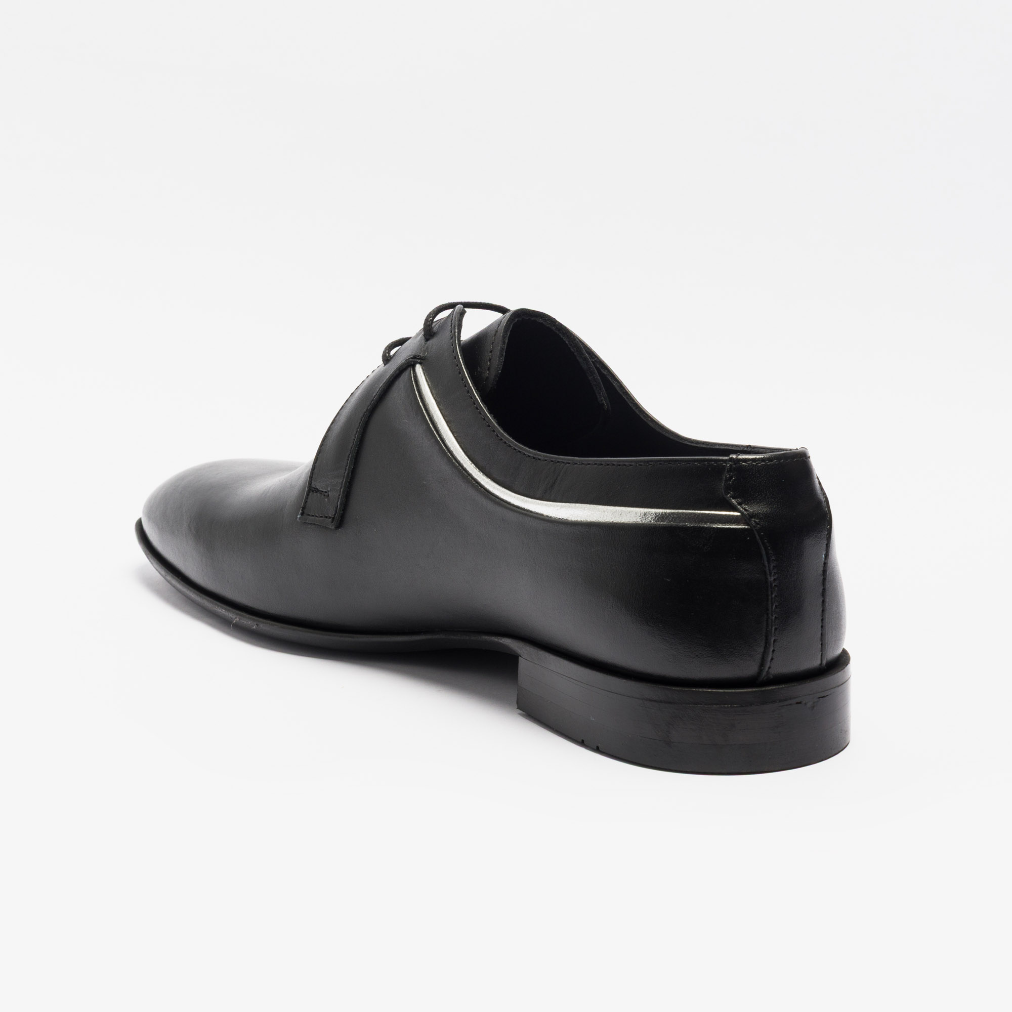 Its timeless black tone paired with the unique silver back detail enhances its modern identity and offers an elevated dress shoe experience for contemporary gentlemen looking to stand out with subtle luxury.