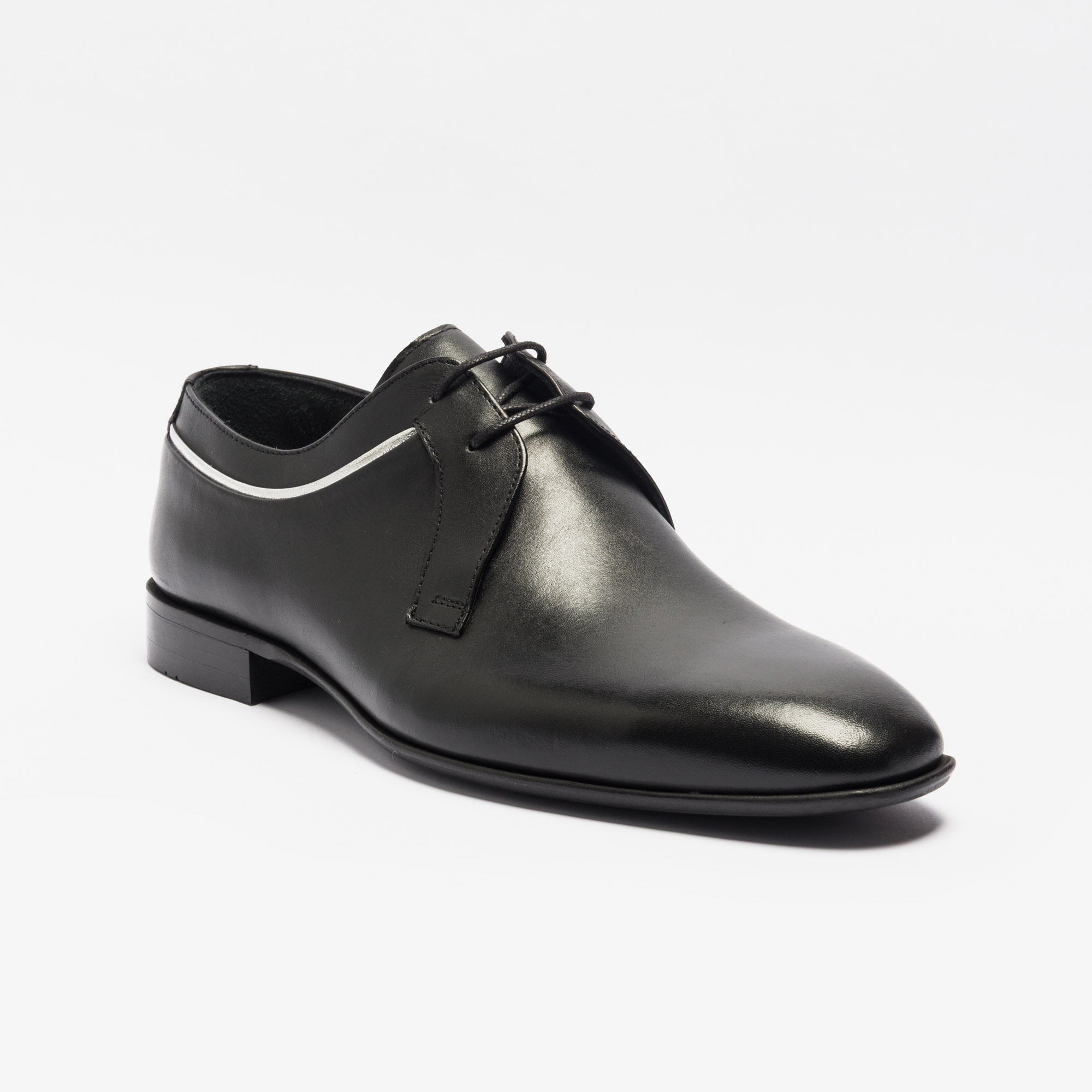This black leather formal shoe with a silver core around the upper back is crafted for men who value refined styling, durability, and modern sophistication. Designed with premium leather, this shoe offers a polished finish suitable for business meetings, evening functions, weddings, corporate events, or any occasion that requires a sharp and confident appearance. The standout feature is the subtle silver core detailing placed elegantly around the upper back, adding a unique contemporary touch without compromising the classic appeal. Its sleek silhouette ensures versatility, pairing effortlessly with tailored suits, formal trousers, chinos, or semi-formal outfits.