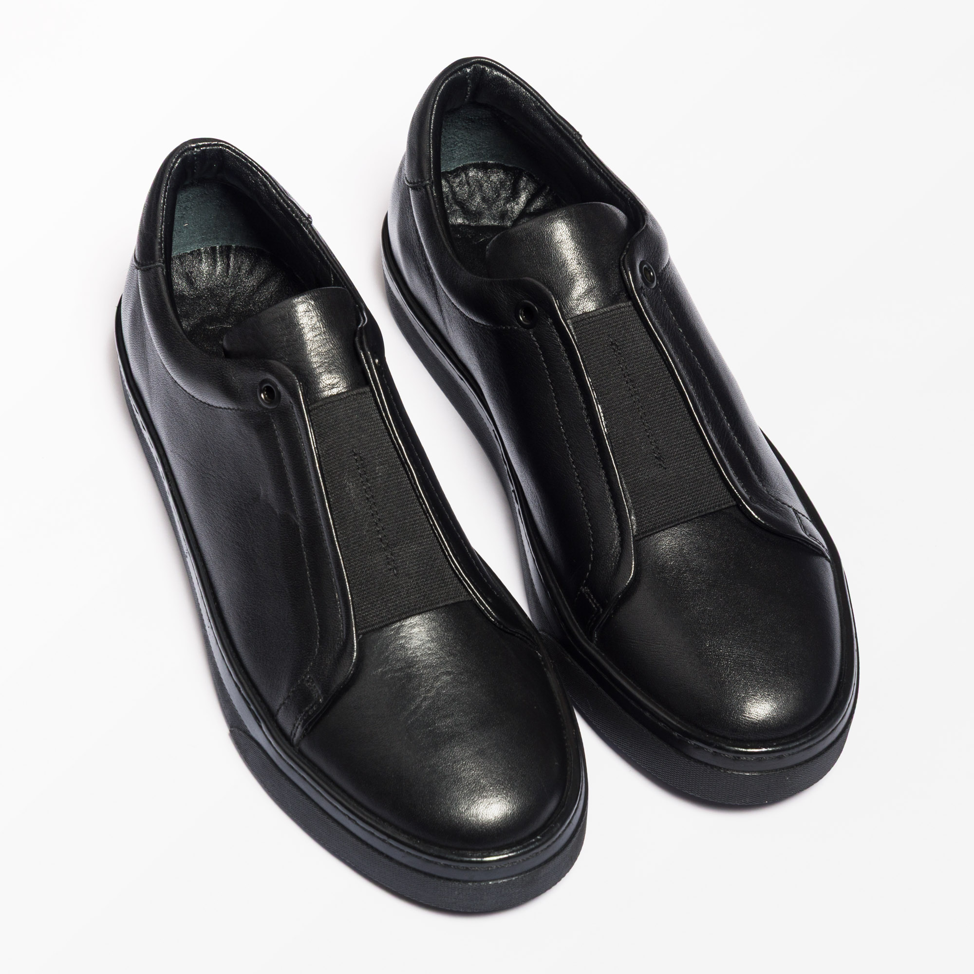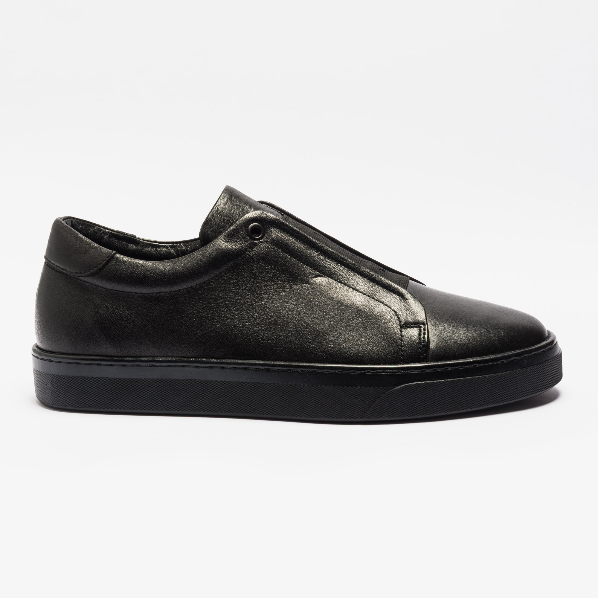 black leather slip-on sneakers for men
