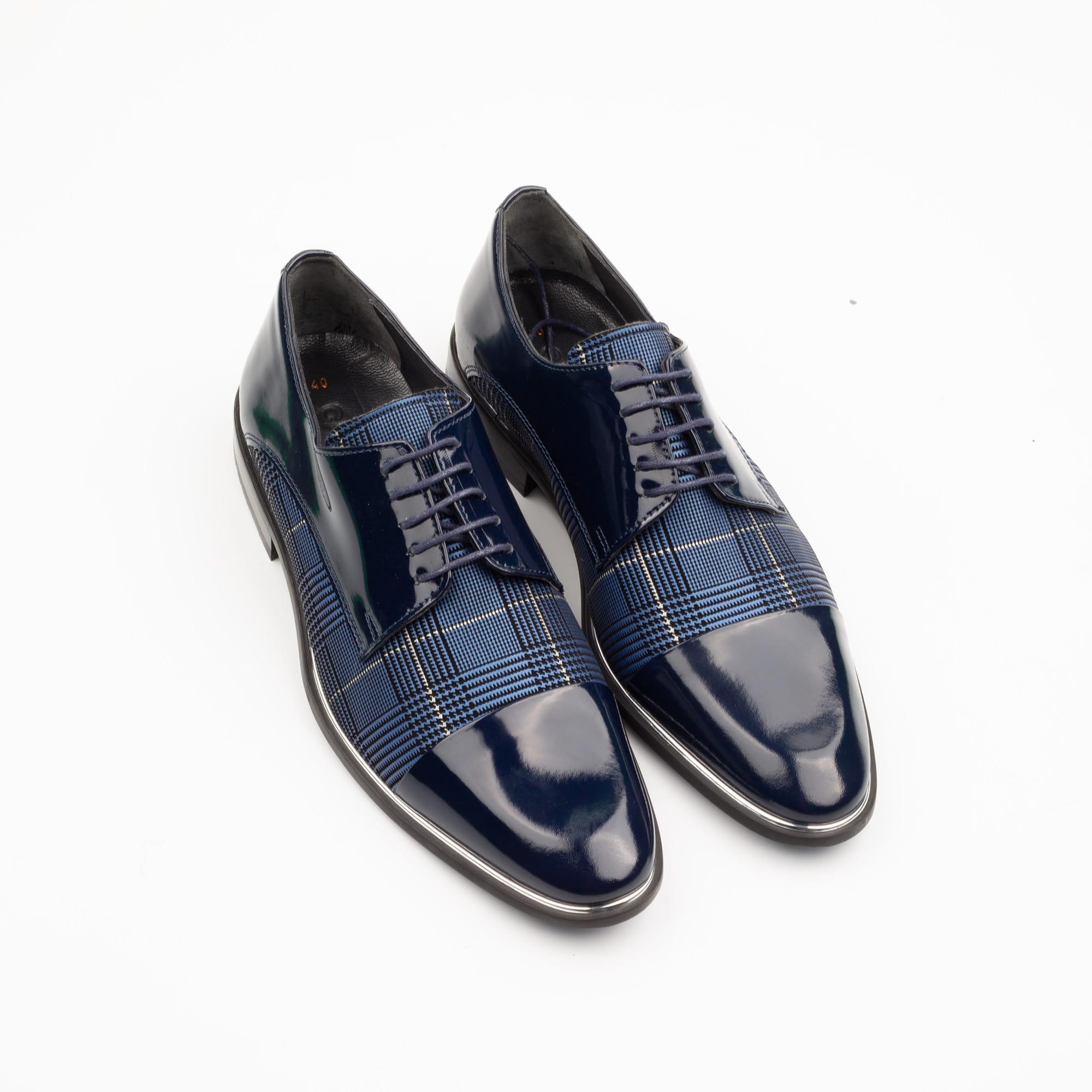 Blue Plaid Oxford Shoes are the perfect blend of modern style and traditional sophistication. These men’s shoes feature a striking blue plaid pattern across the midsection and toe cap, complemented by sleek, polished patent leather accents. The bold plaid design provides a unique texture, making these shoes stand out in any crowd. Whether you’re attending a formal event or simply want to add a stylish twist to your everyday wardrobe, these Oxford shoes are a must-have.