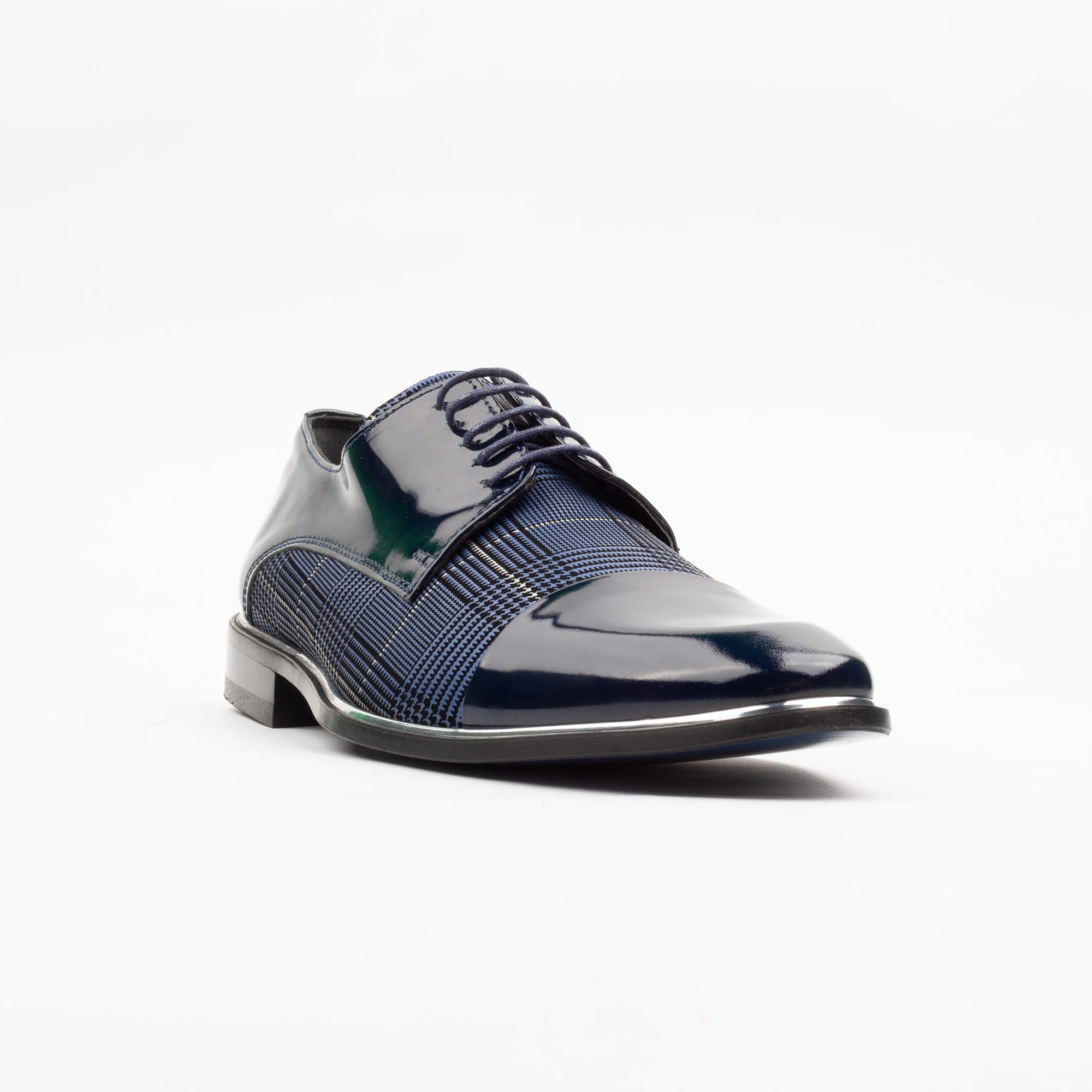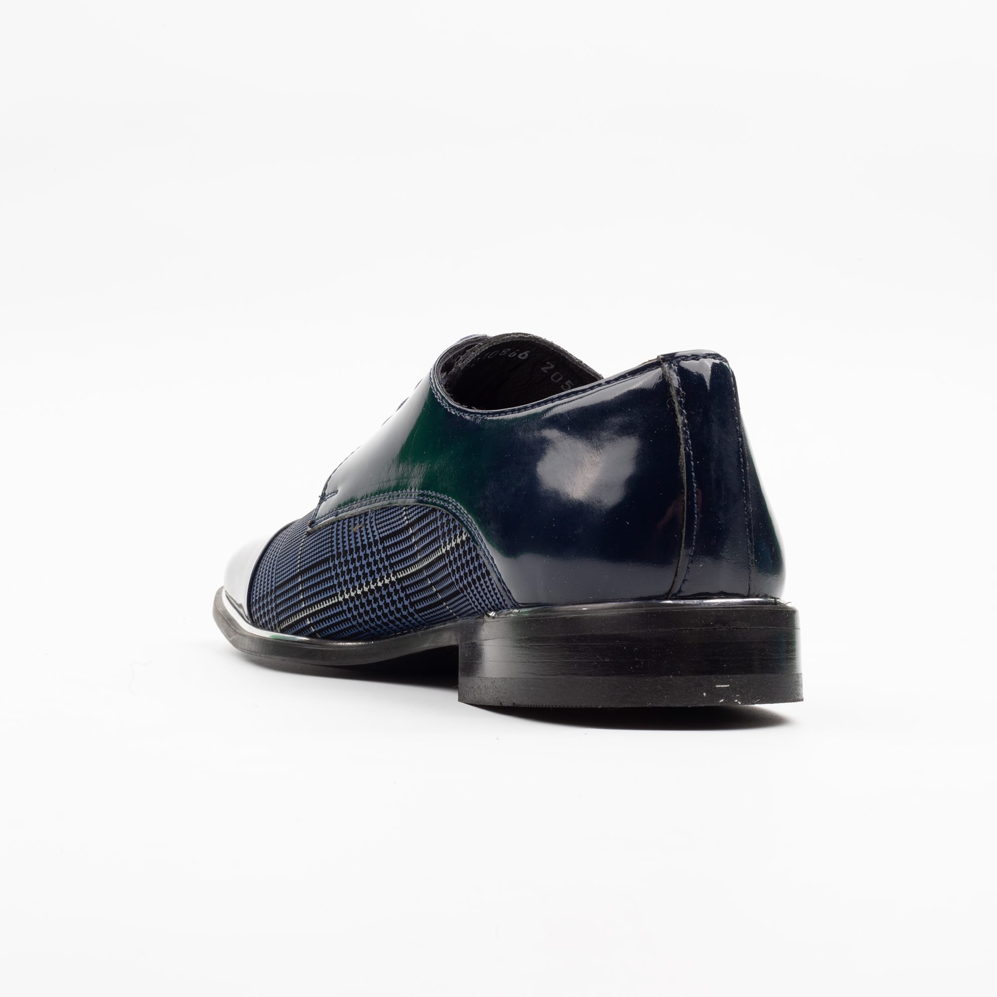 Blue Plaid Oxford Shoes offer a stylish and modern twist on the classic Oxford design. These shoes are perfect for fashion-forward men who want to make a statement. Crafted with a striking blue plaid pattern and polished navy patent leather accents, these shoes blend traditional elegance with contemporary flair. The intricate plaid design adds a unique texture to the shoe, while the patent leather provides a sleek, polished finish.