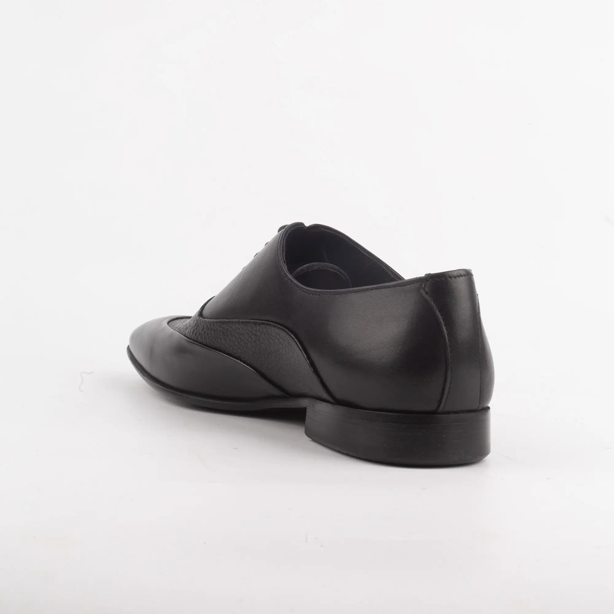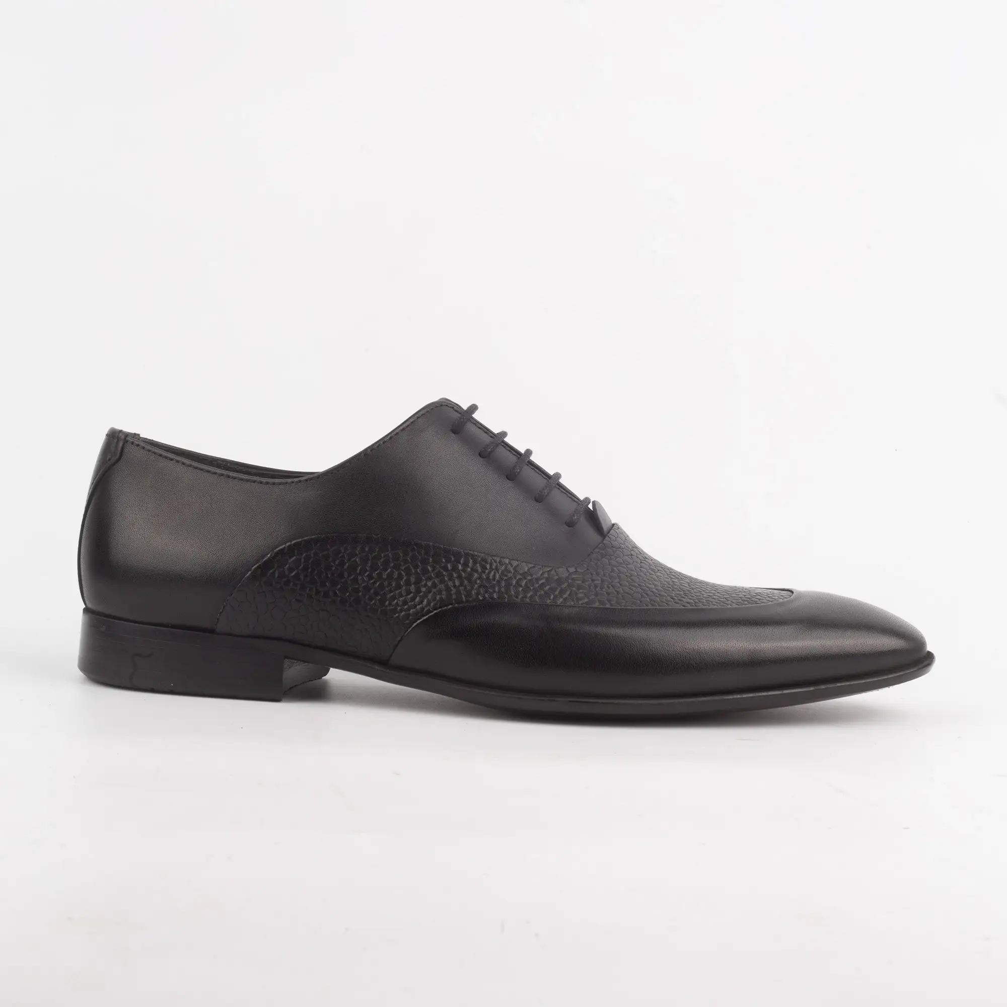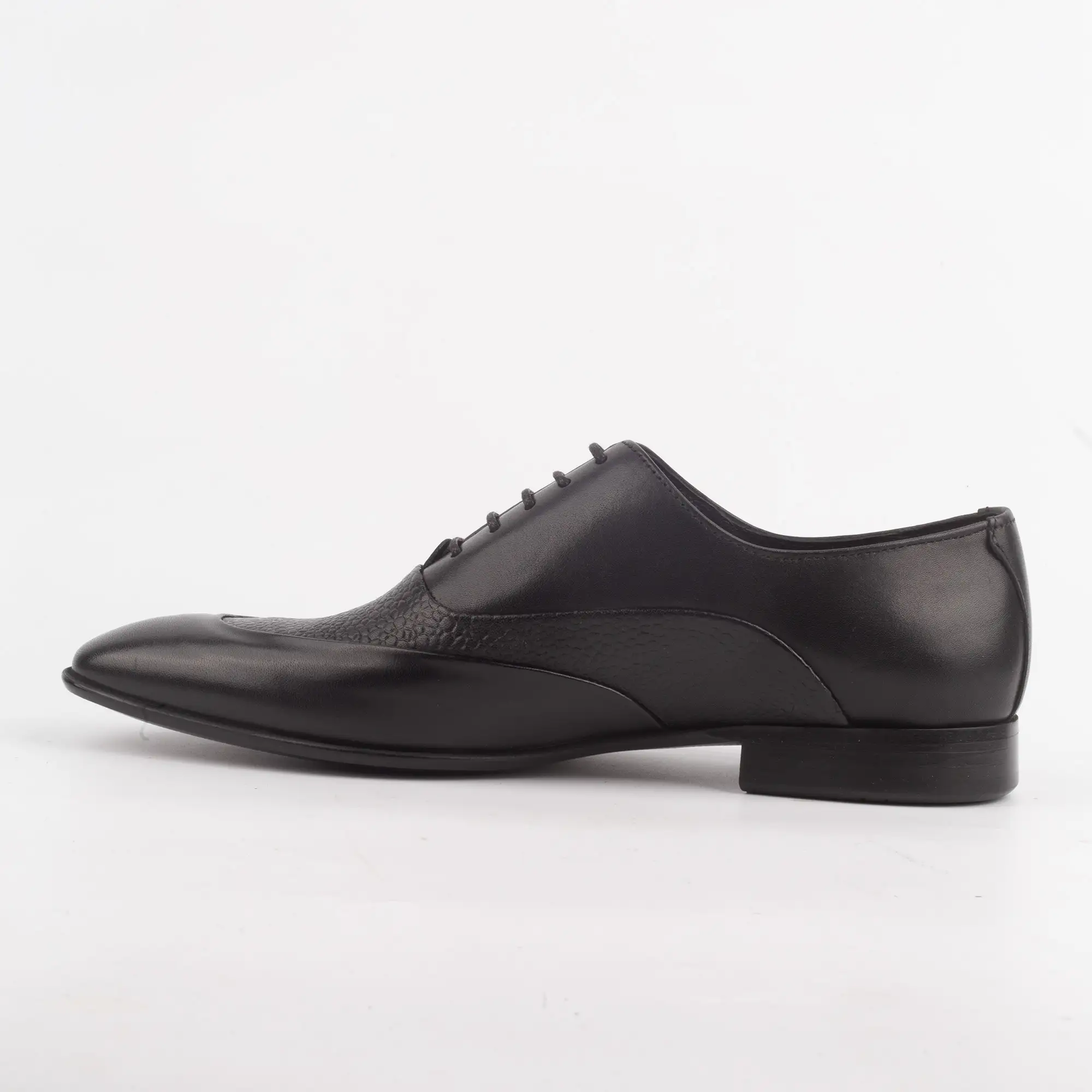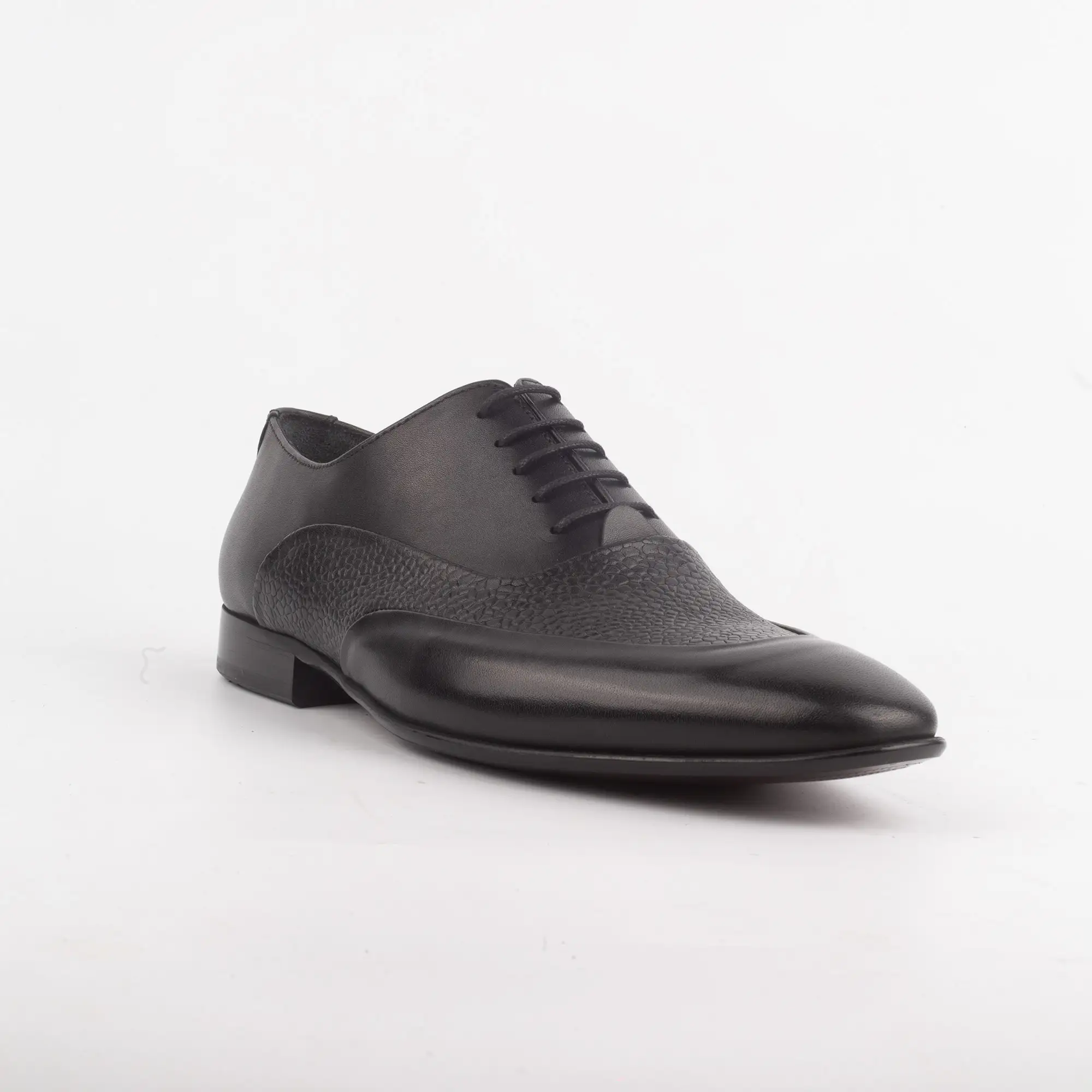 The Black Textured Onyx Oxford introduces a sophisticated interplay of light and shadow through its dual-texture leather construction. By pairing smooth, polished calfskin with a tactile pebbled grain, we’ve created a silhouette that commands visual interest without sacrificing formal integrity.