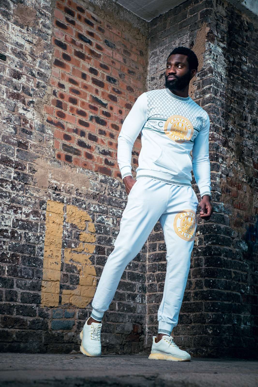 The Calvano Men’s Designer Tracksuit is the perfect fusion of luxury and streetwear, bringing high-end design elements to a casual outfit. With its bold gold accents and intricate detailing, this tracksuit sets itself apart from ordinary streetwear. Whether you’re headed out for a casual day or an urban event, this eye-catching outfit makes a statement of class and confidence. The tracksuit features a blend of modern design and premium quality, making it the ideal choice for men who appreciate the finer things in life while staying comfortable and stylish.