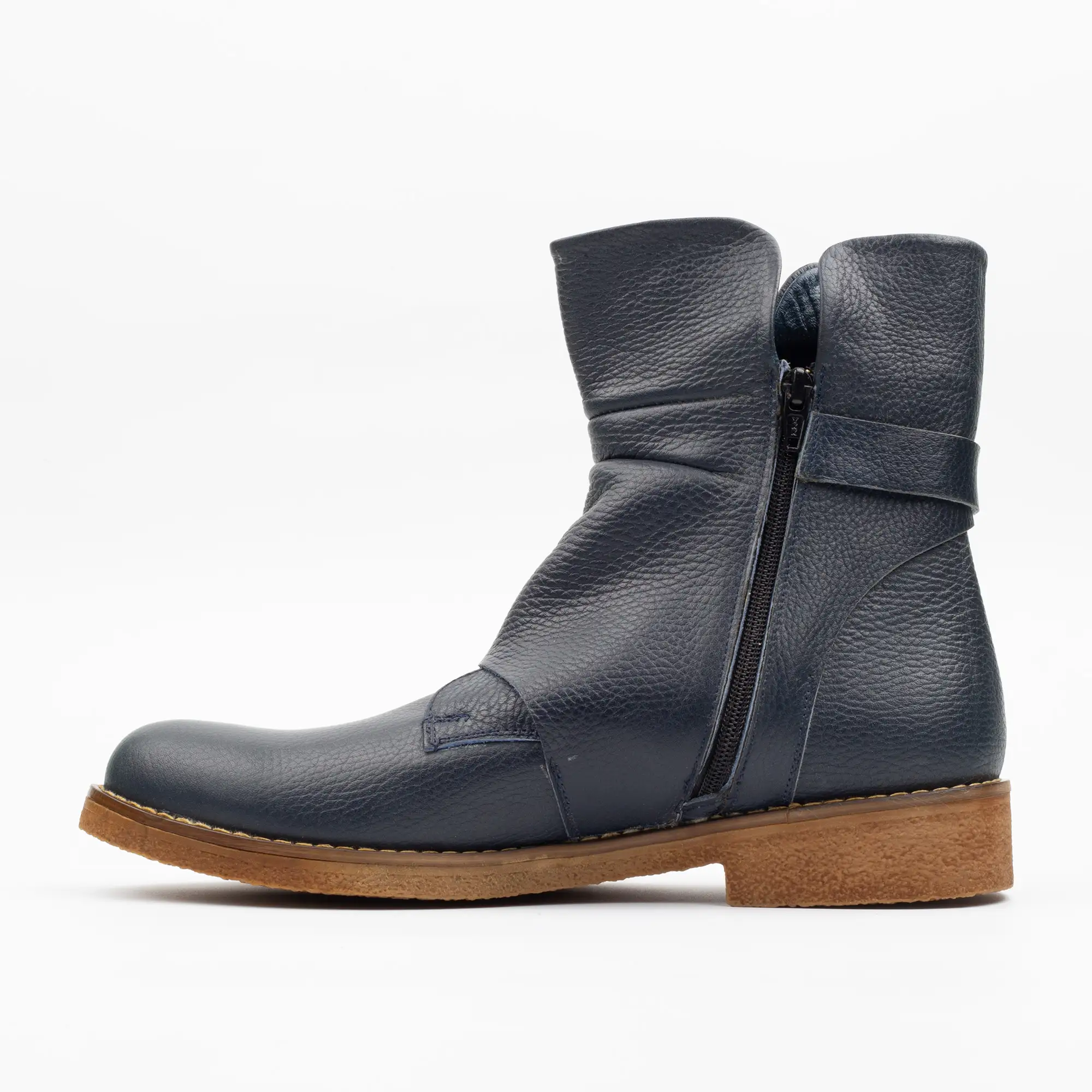 Calvano continues its legacy of footwear excellence with this mid-cut Navy Leather Ankle Boots. The upper is meticulously crafted from premium navy leather, showcasing a natural pebbled texture that hides creases and develops a unique patina over time. Unlike mass-produced alternatives, the grain here provides a tactile depth that signals quality to any observer.