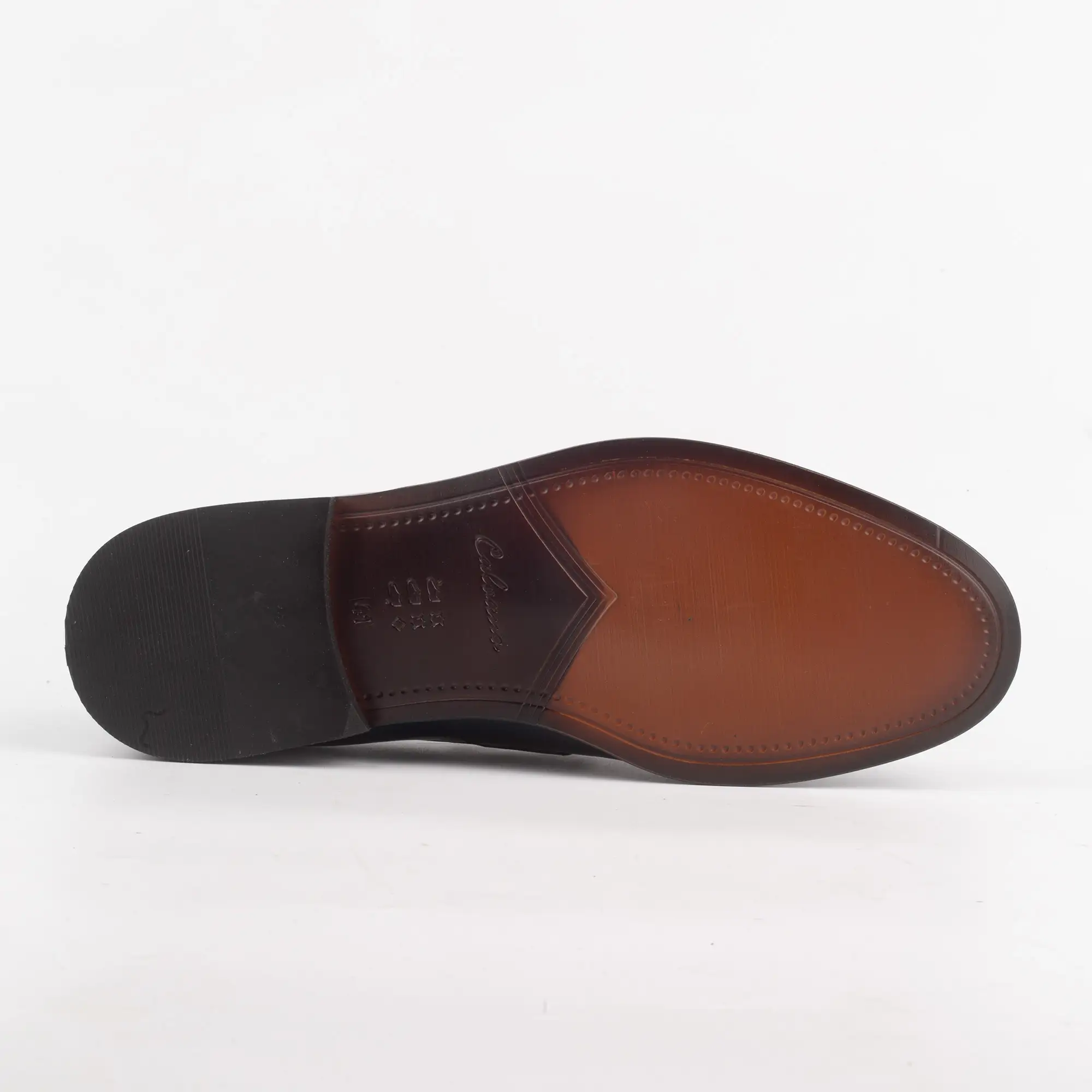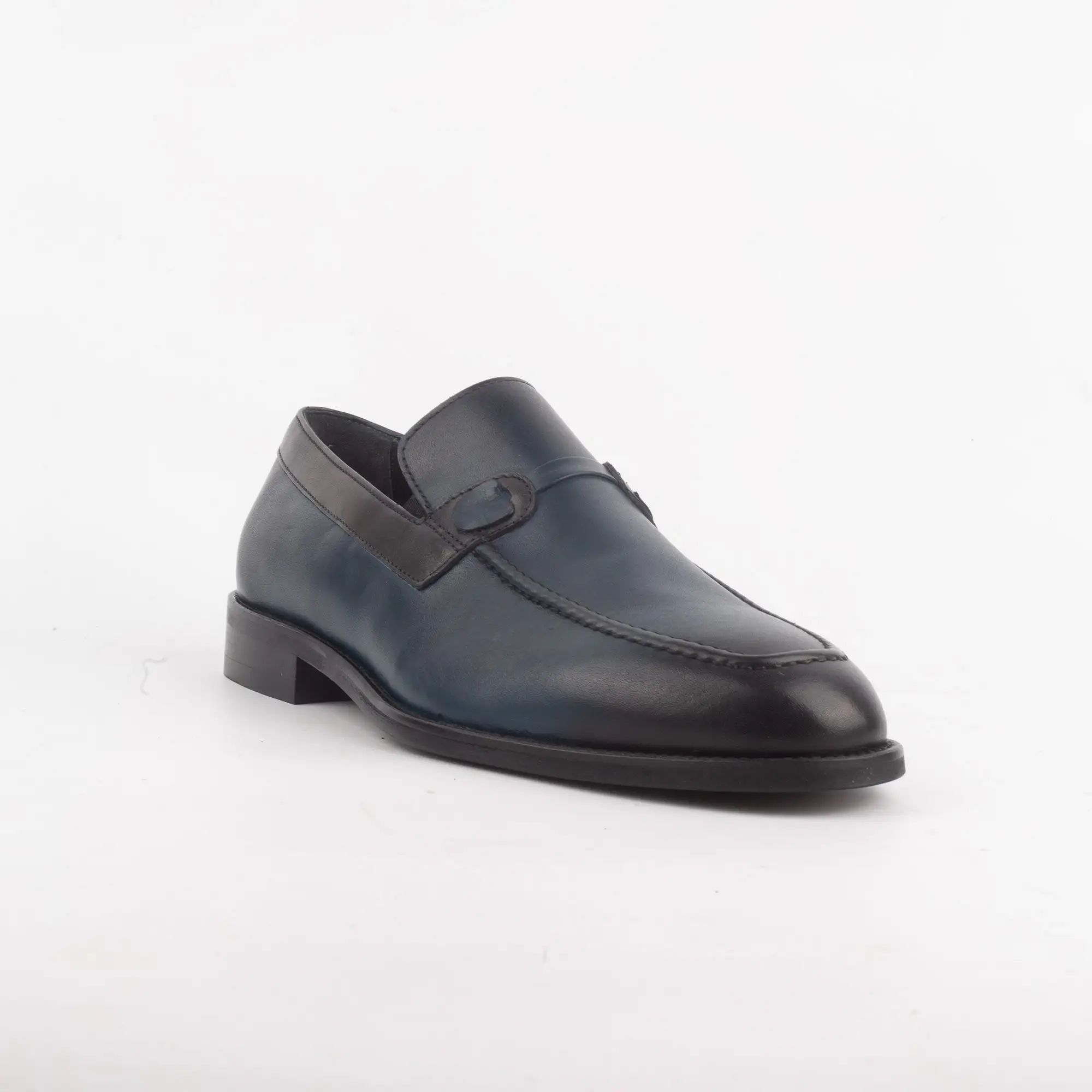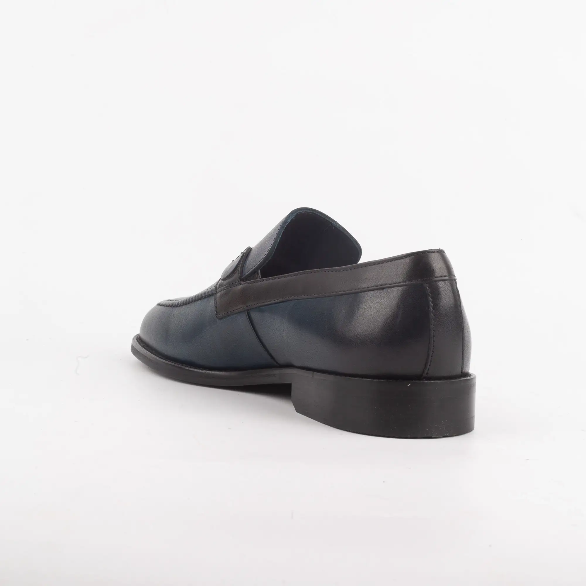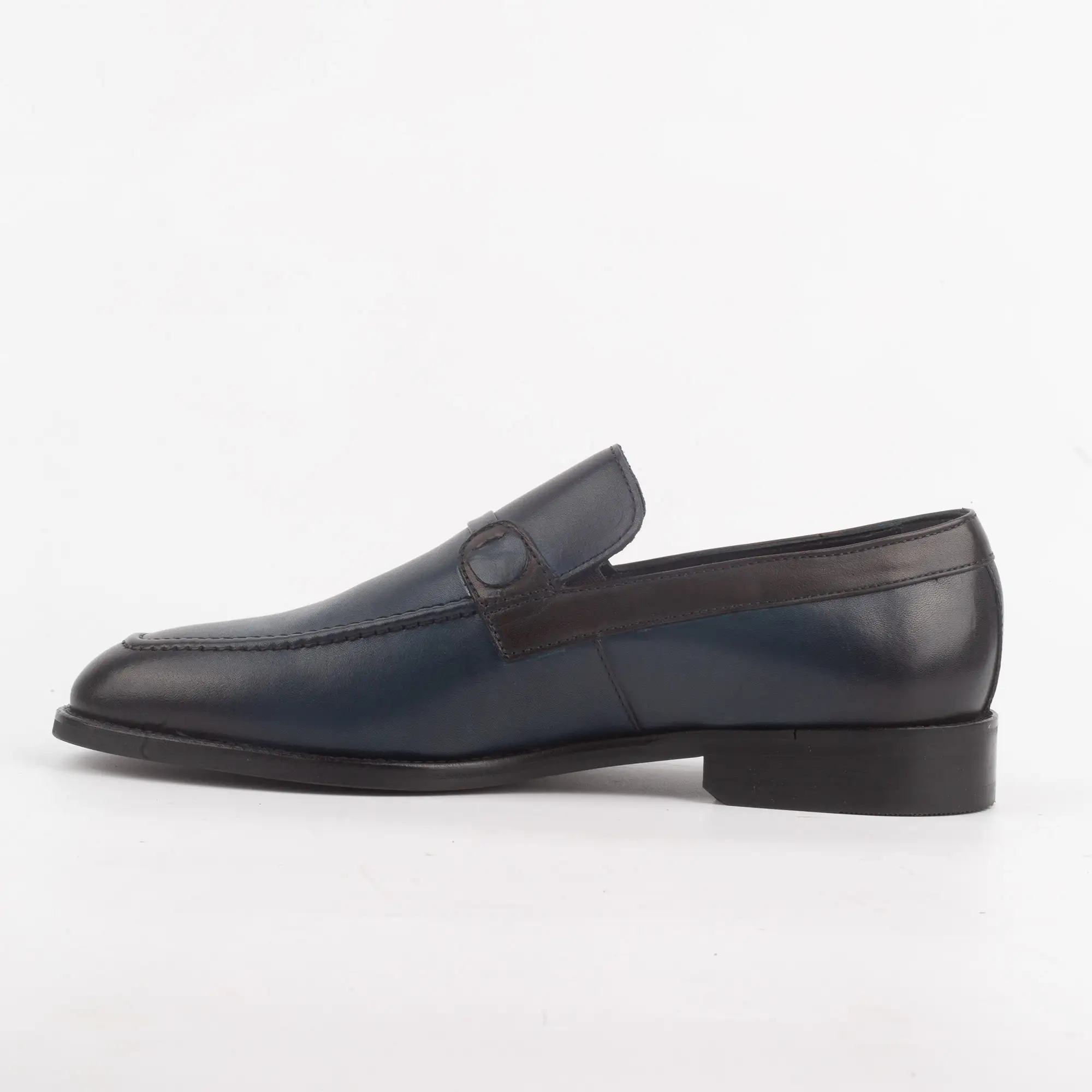 - Sophisticated Two-Tone Design: The deep navy body is accented by a subtle dark brown trim, making these loafers exceptionally easy to pair with various suit colors and belt tones.