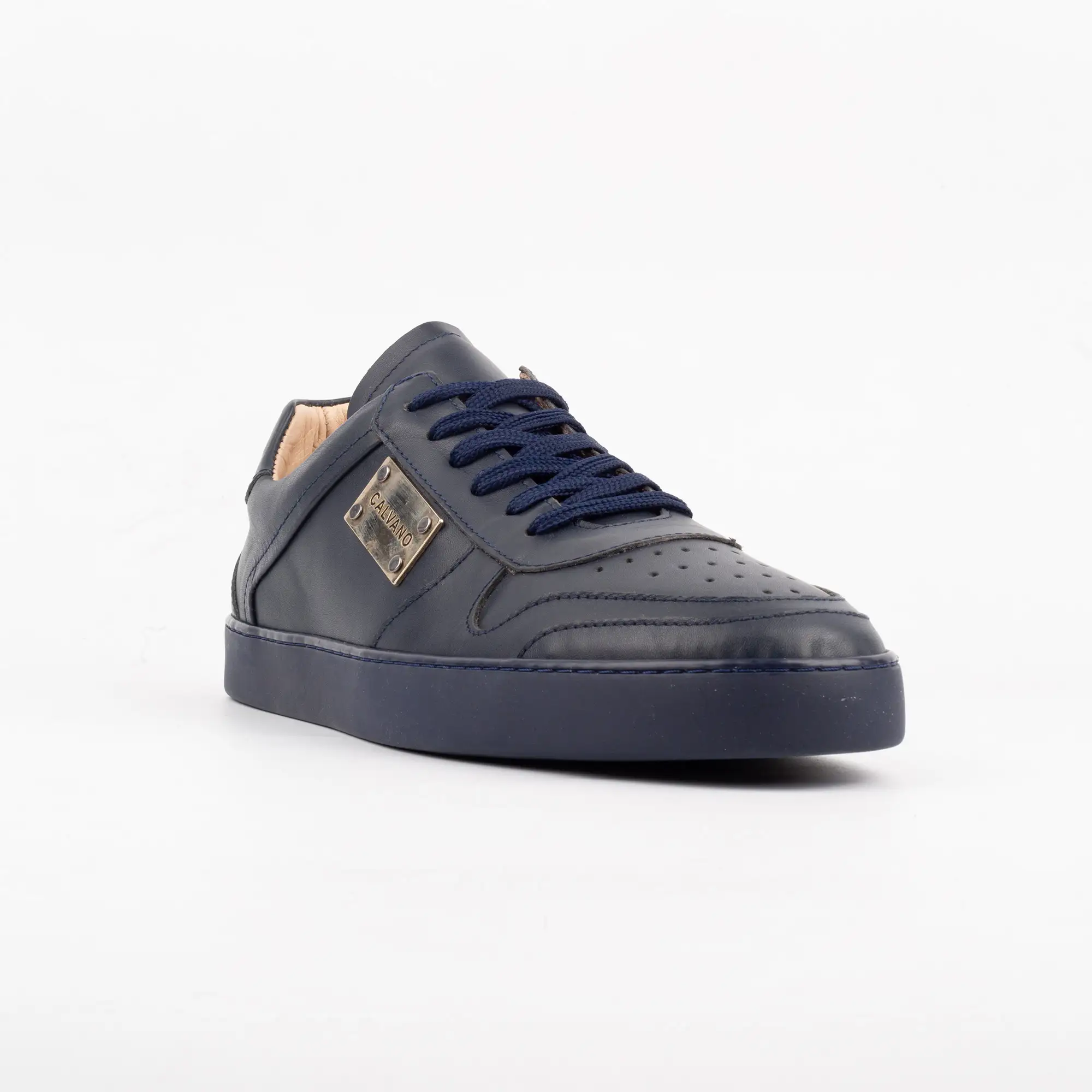 Calvano remains a benchmark for European-inspired design within the South African market. This specific model utilizes high-grade navy leather that develops a unique character over time. The monochromatic aesthetic, extending from the lacing system to the durable rubber outsole, ensures these sneakers remain a versatile staple for both smart-casual and leisure attire.