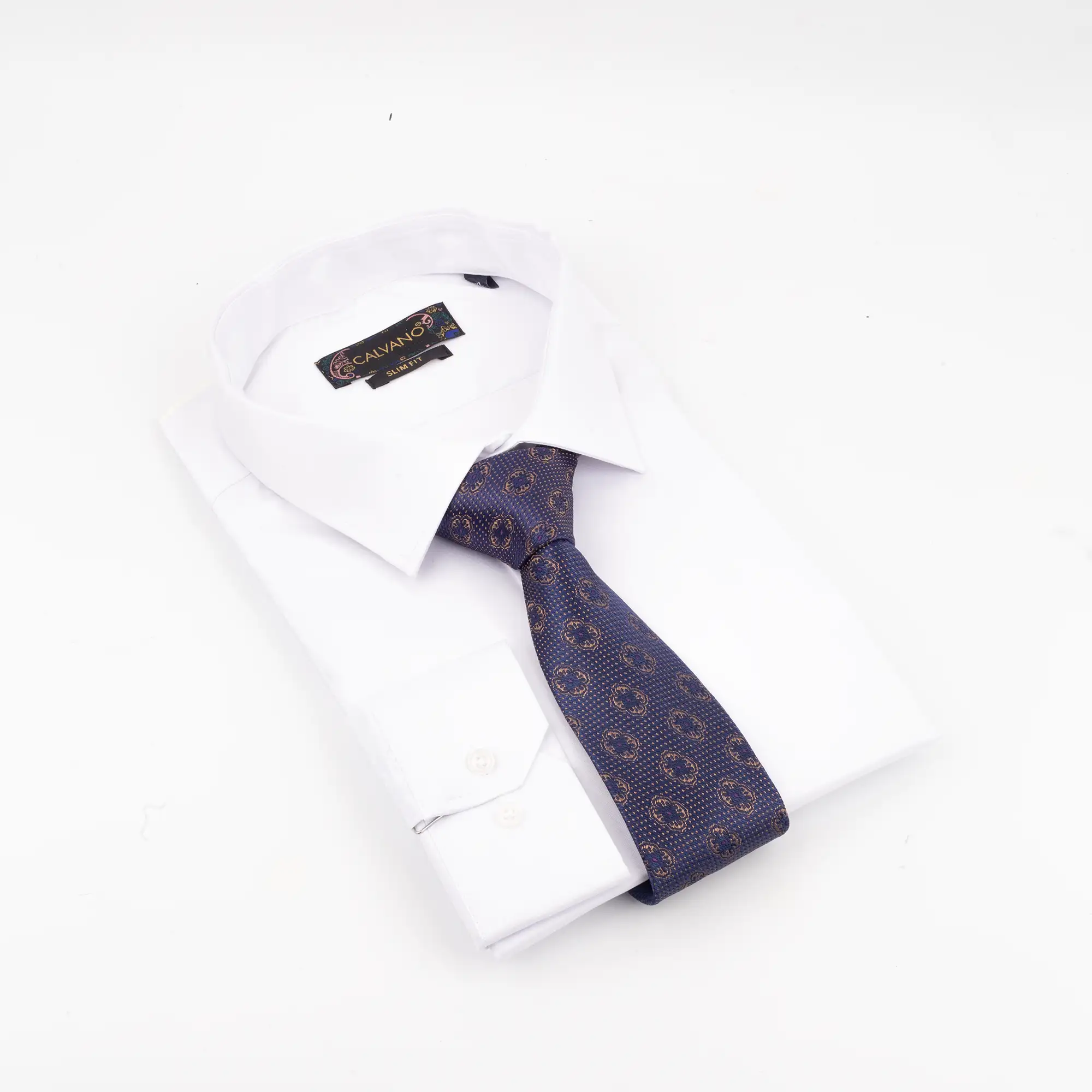 A: To maintain the integrity of the Calvano navy patterned tie, we recommend hanging it on a dedicated tie rack or rolling it loosely. Avoid leaving it knotted overnight, as this stresses the fibers and the interlining.