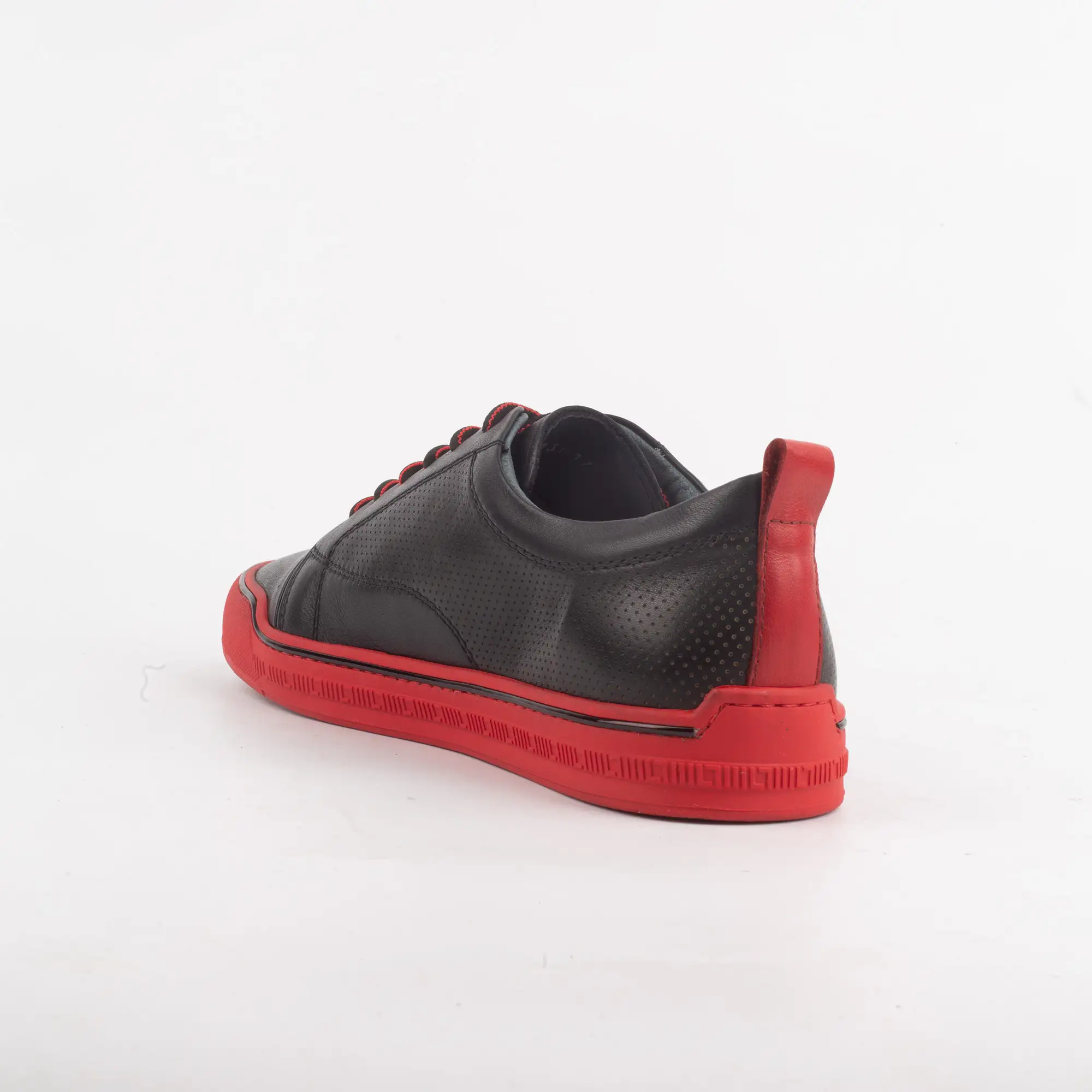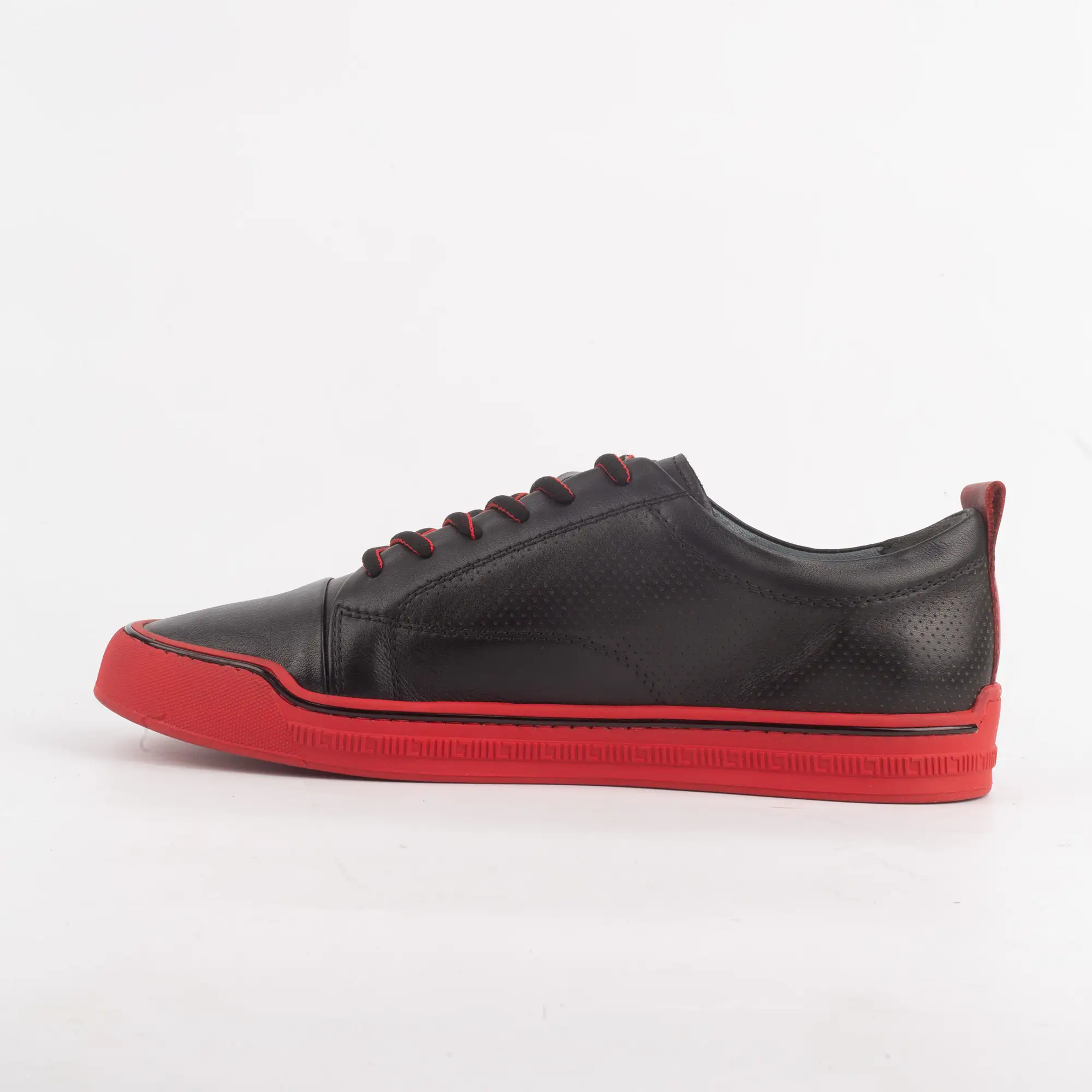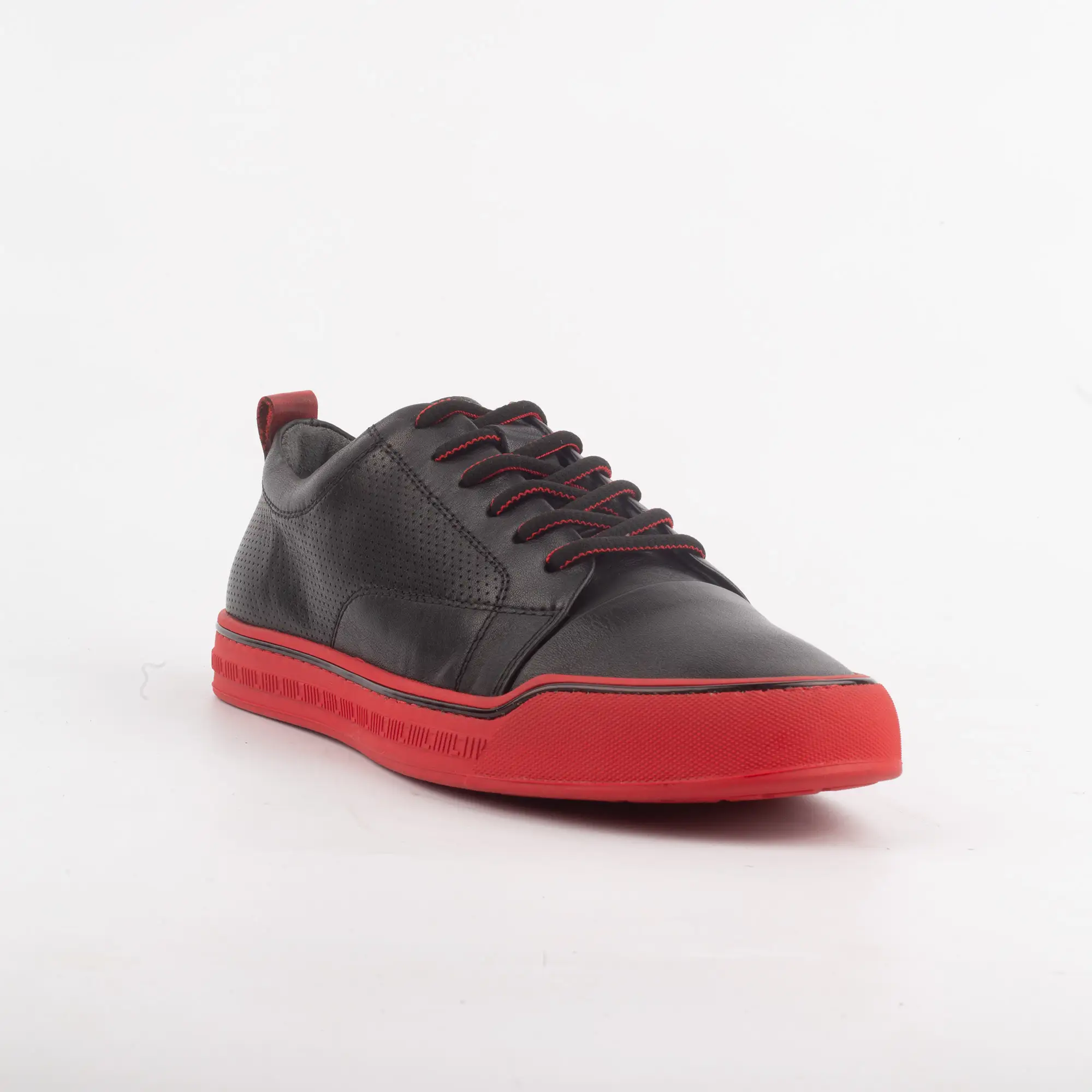 Constructed from top-tier leather, the matte black finish provides a sophisticated base that highlights the vibrant red sole sneakers. The micro-perforated side panels aren’t just for show; they ensure your feet stay fresh while you are on the move through the city. The red lace accents tie the whole aesthetic together, creating a look that is aggressive yet refined.