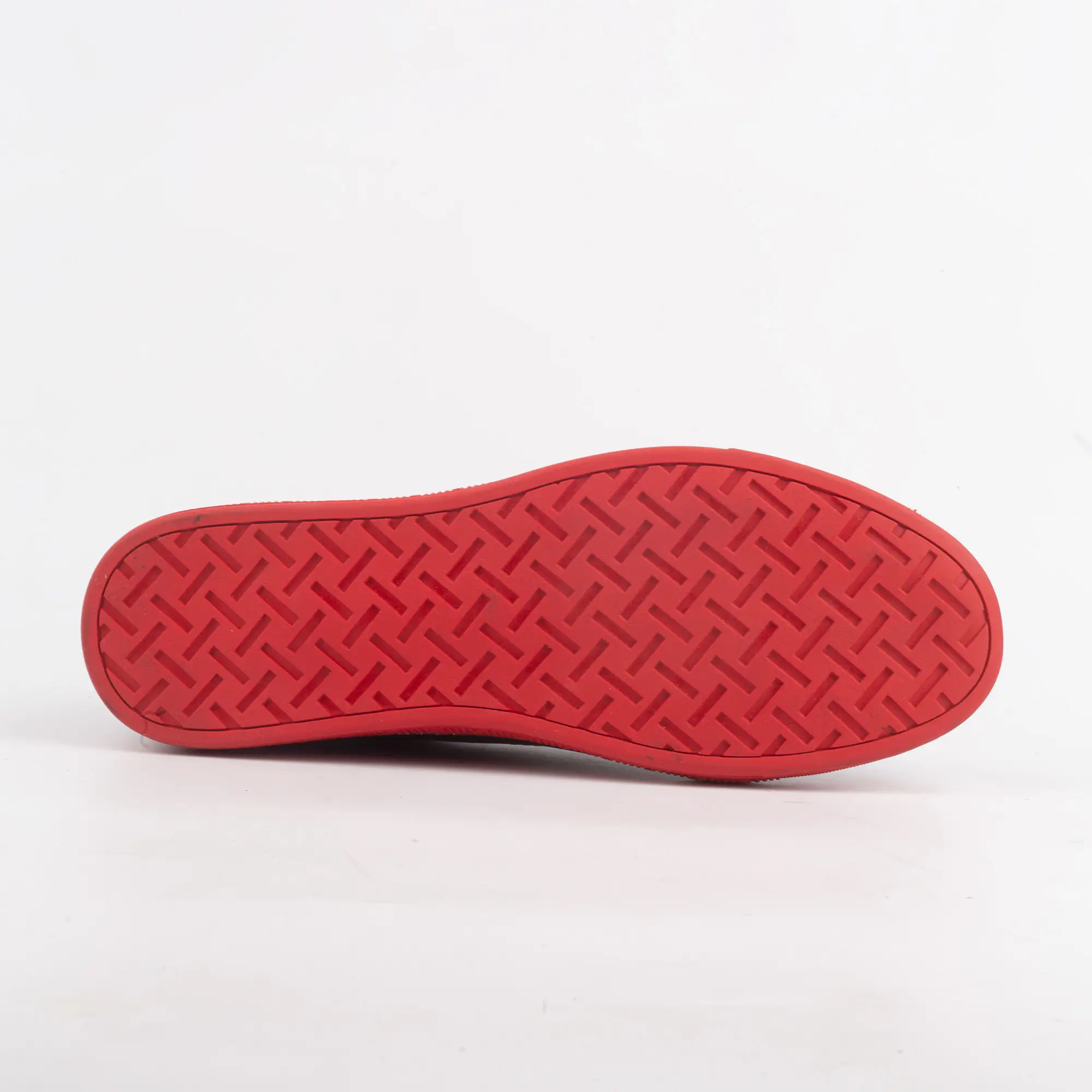 A: Use a damp microfiber cloth with mild soap to wipe the rubber sole after use. Avoid harsh chemicals to preserve the deep red pigment.