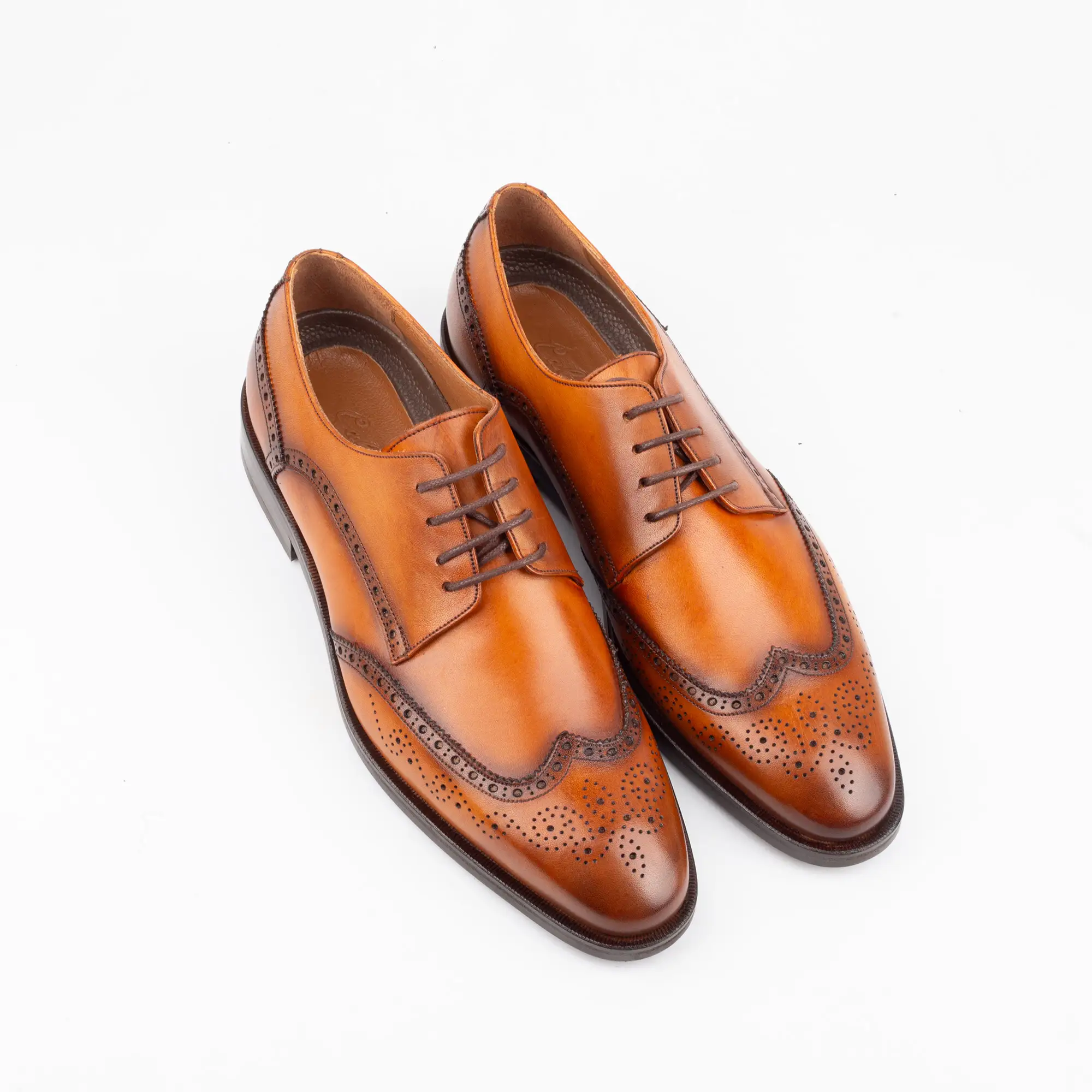 Command attention and embody timeless elegance with our exquisite Calvano Artisanal Tan Leather Brogues. Each pair represents the pinnacle of artisanal craftsmanship, meticulously fashioned from the finest genuine leather to deliver unparalleled style and enduring comfort. From the moment you lace them up, you’ll feel the supple quality of the leather, expertly shaped and finished to a rich, warm tan patina that speaks volumes about its premium origins.