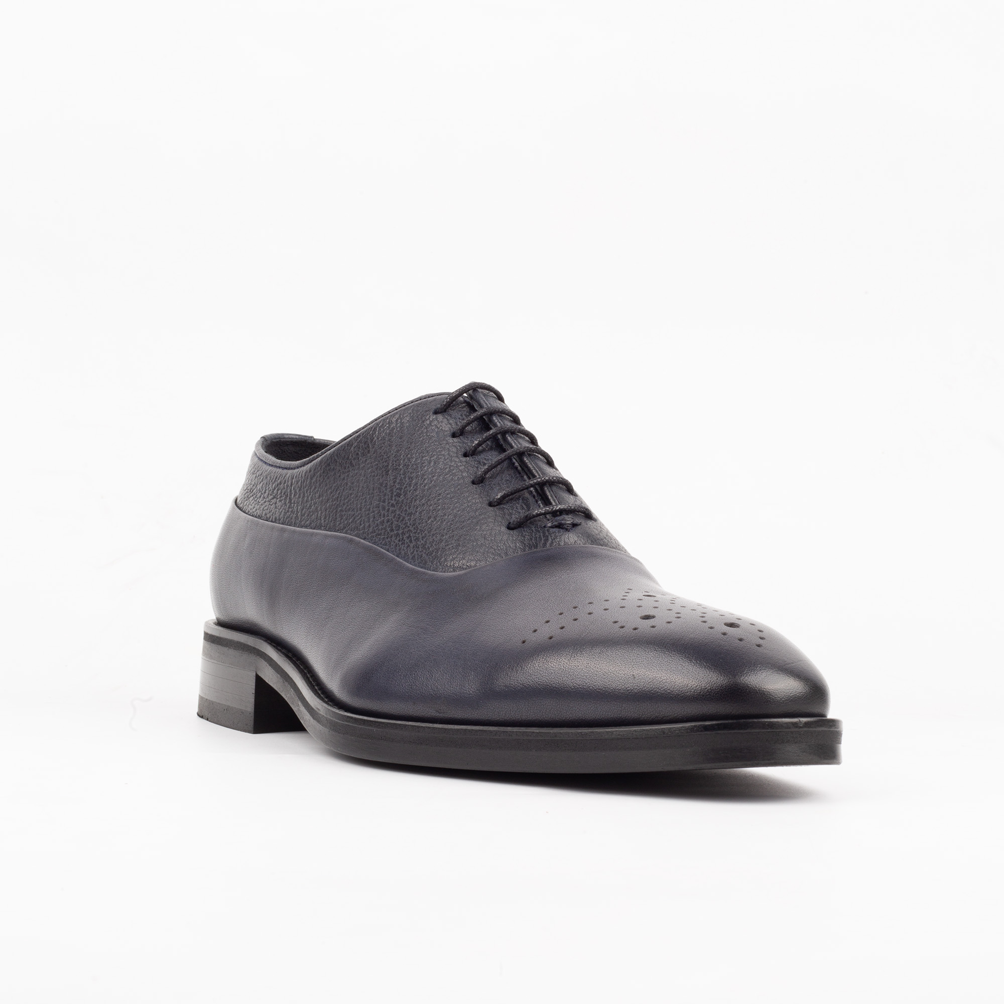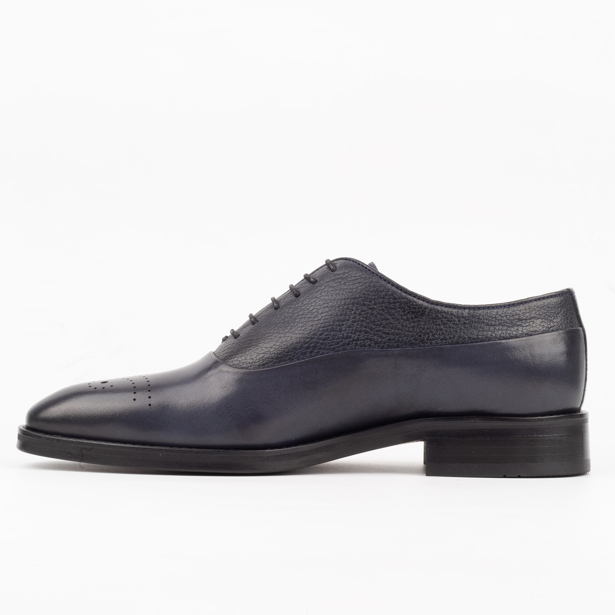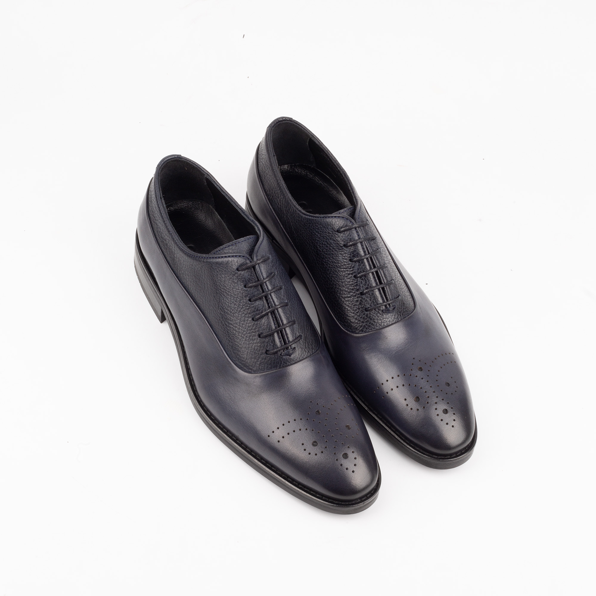 Step into sophistication with these Elegant Navy Blue Leather Oxford Shoes for Men, a perfect fusion of timeless craftsmanship and contemporary design. Meticulously handcrafted from premium quality leather, these Oxfords feature a sleek dual-texture finish — smooth polished leather at the toe and vamp, complemented by subtly grained leather around the collar for a refined yet modern appeal.