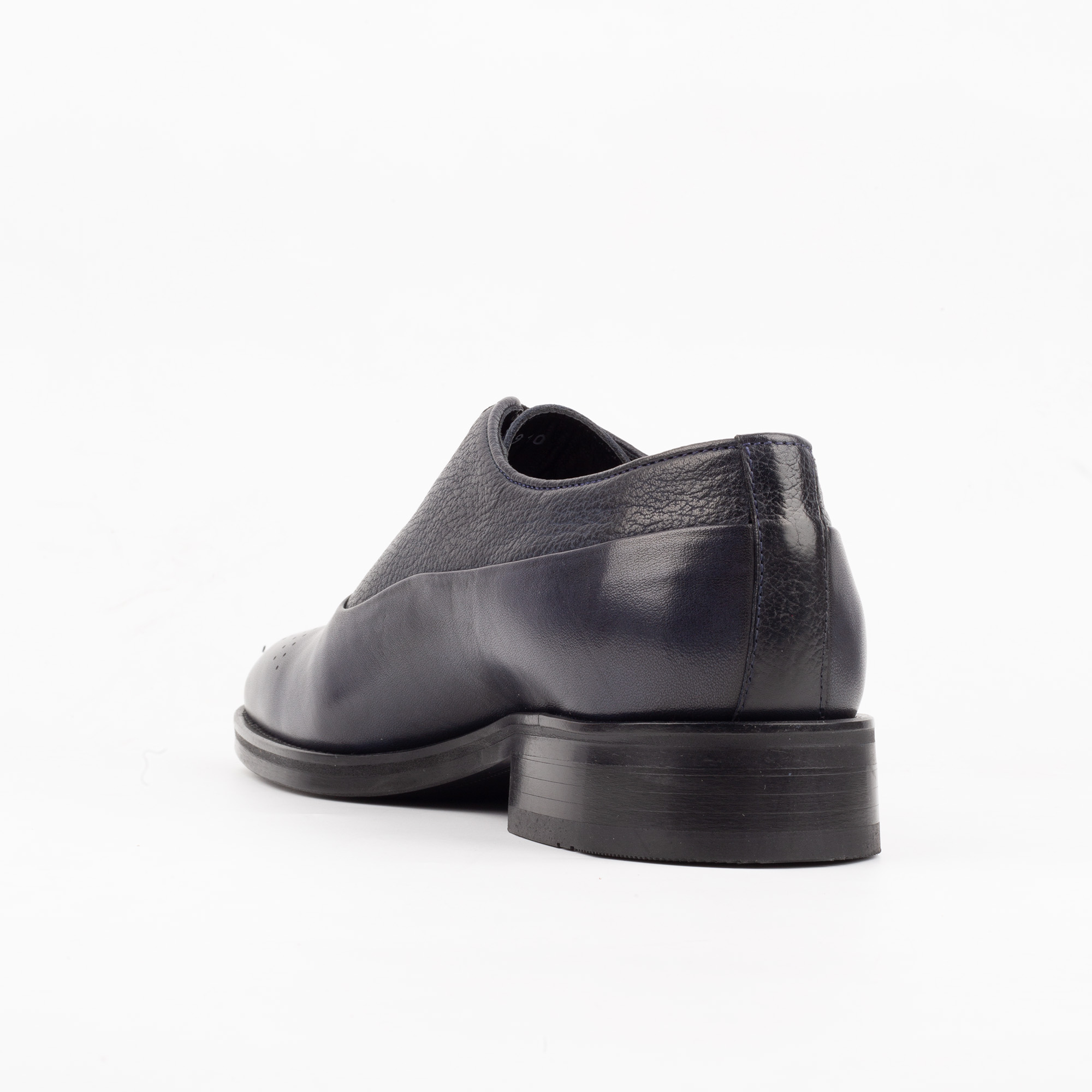 The deep navy tone adds a unique twist to traditional black formal shoes, making them versatile enough to pair with both classic suits and smart-casual attire. The closed-lace design ensures a snug fit, while the durable rubber sole offers long-lasting comfort and traction for all-day wear. Minimal perforation details on the toe add a hint of elegance without overwhelming the clean design.