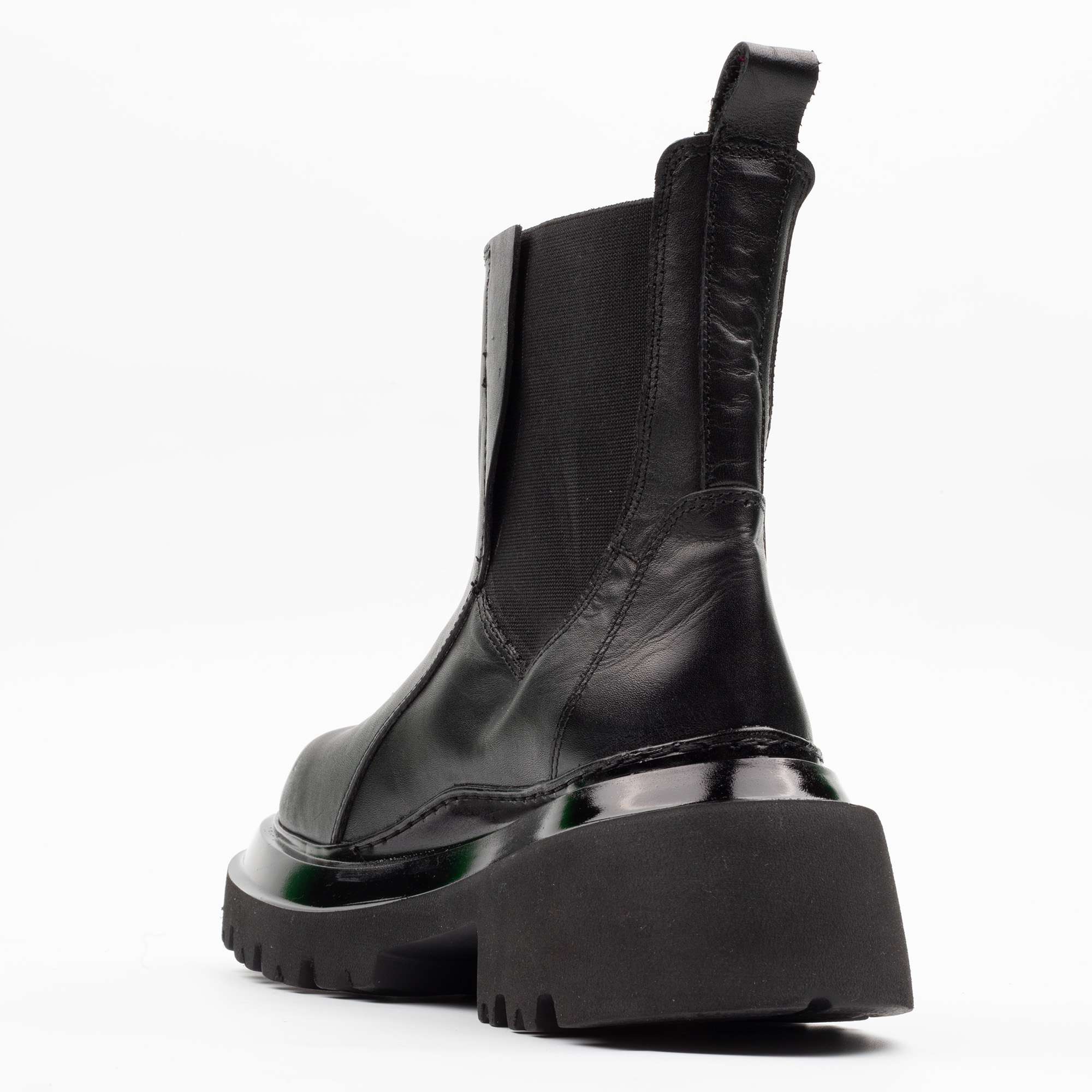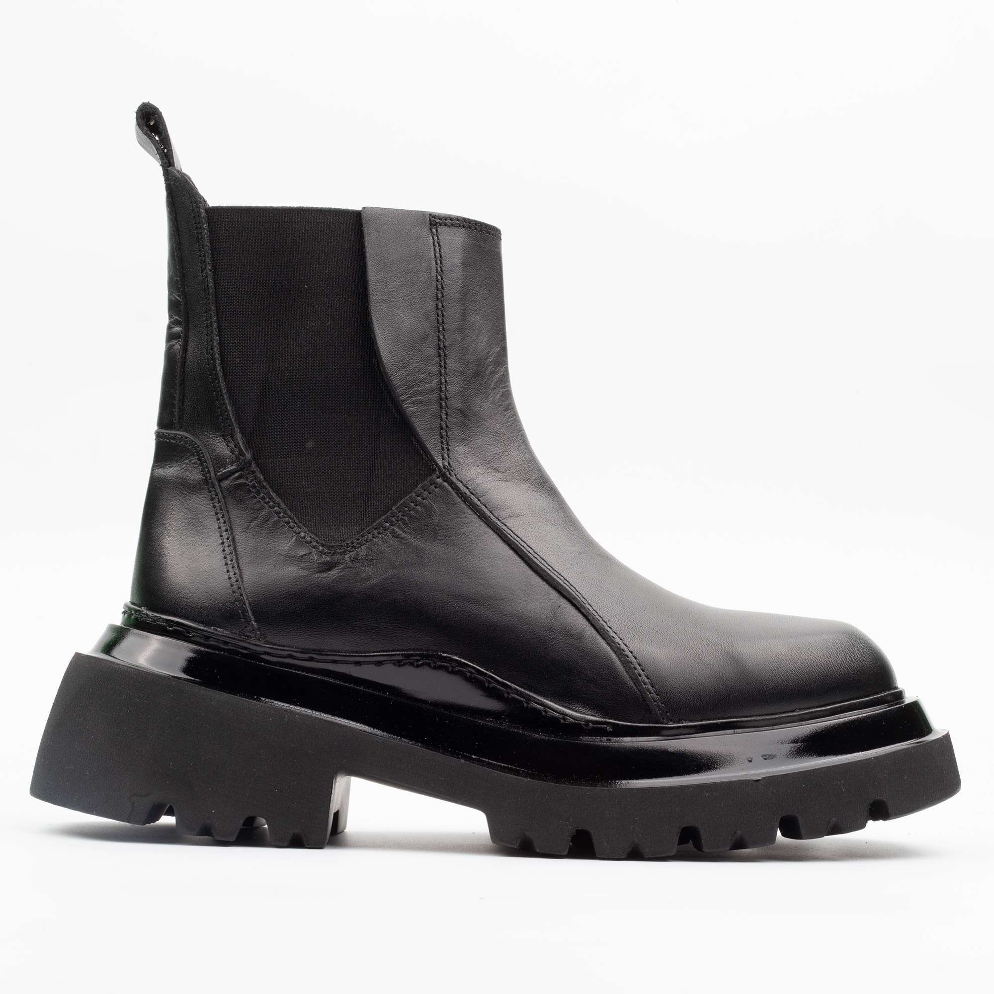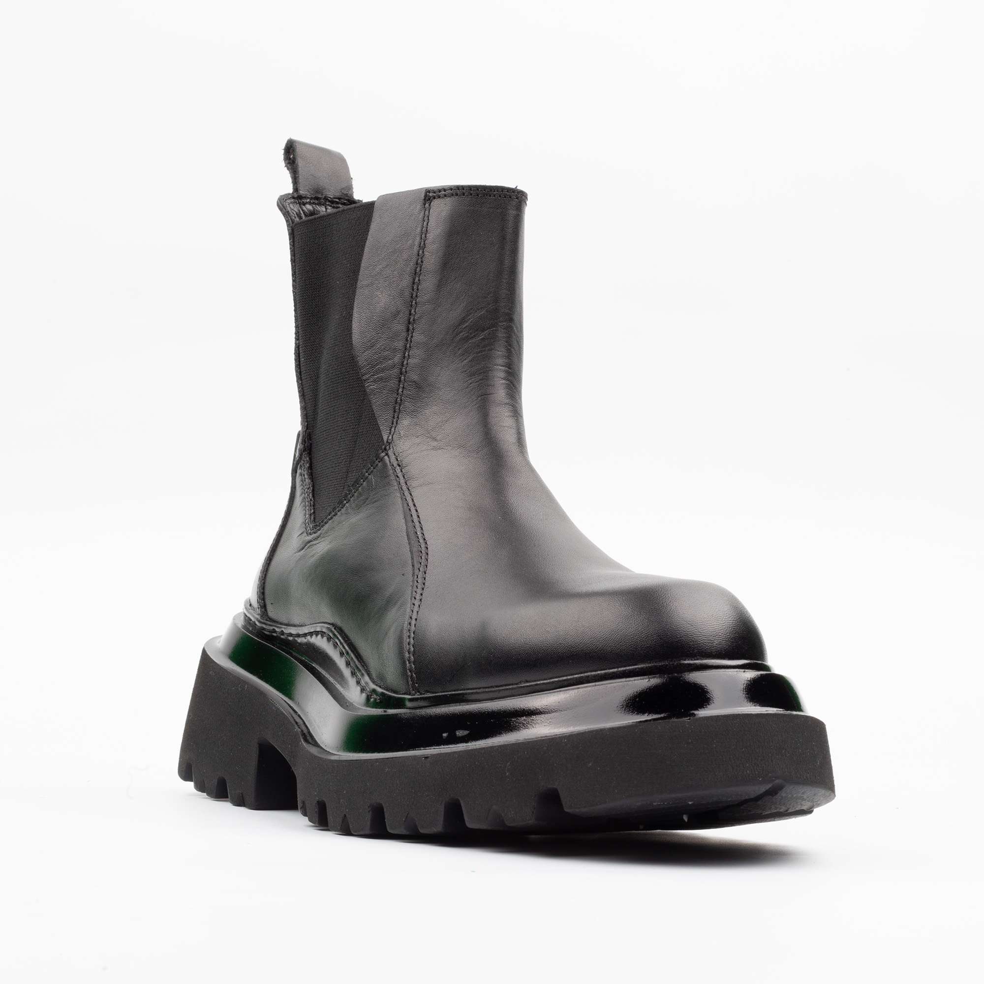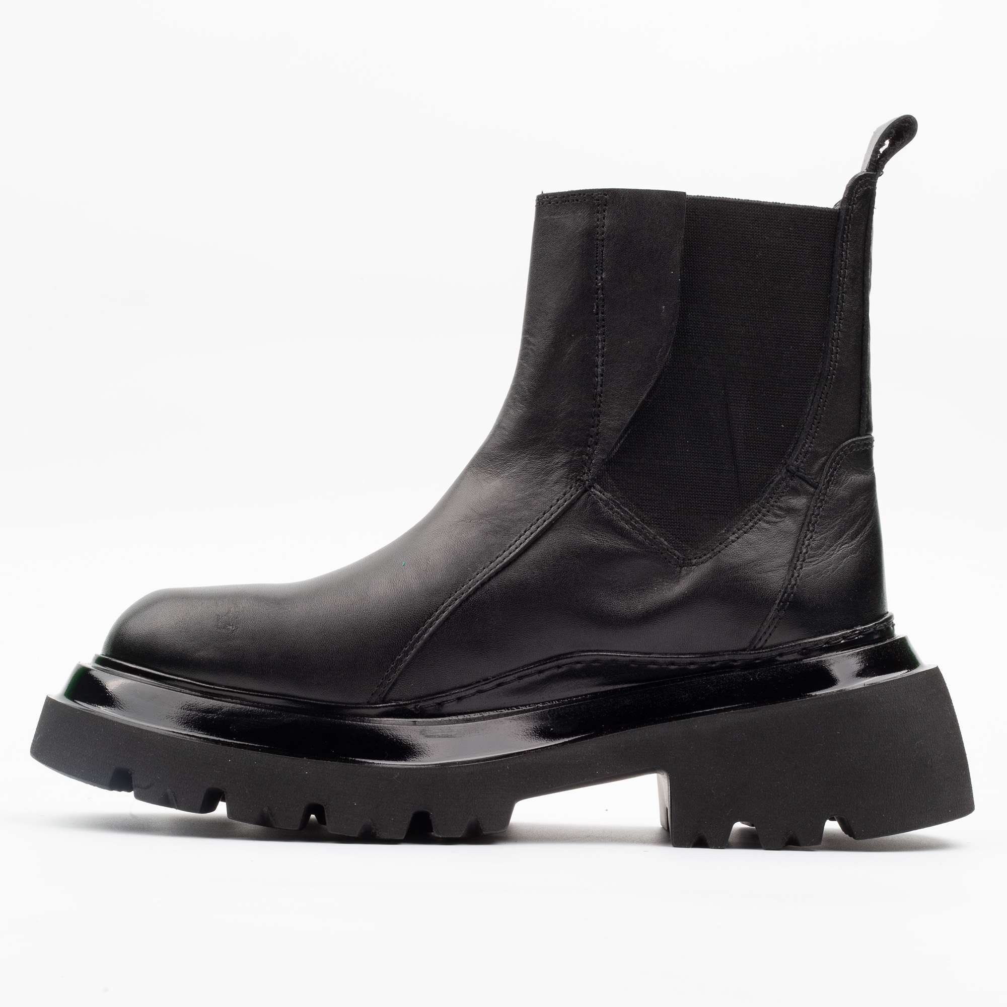 – Black leather Chelsea boots with chunky sole