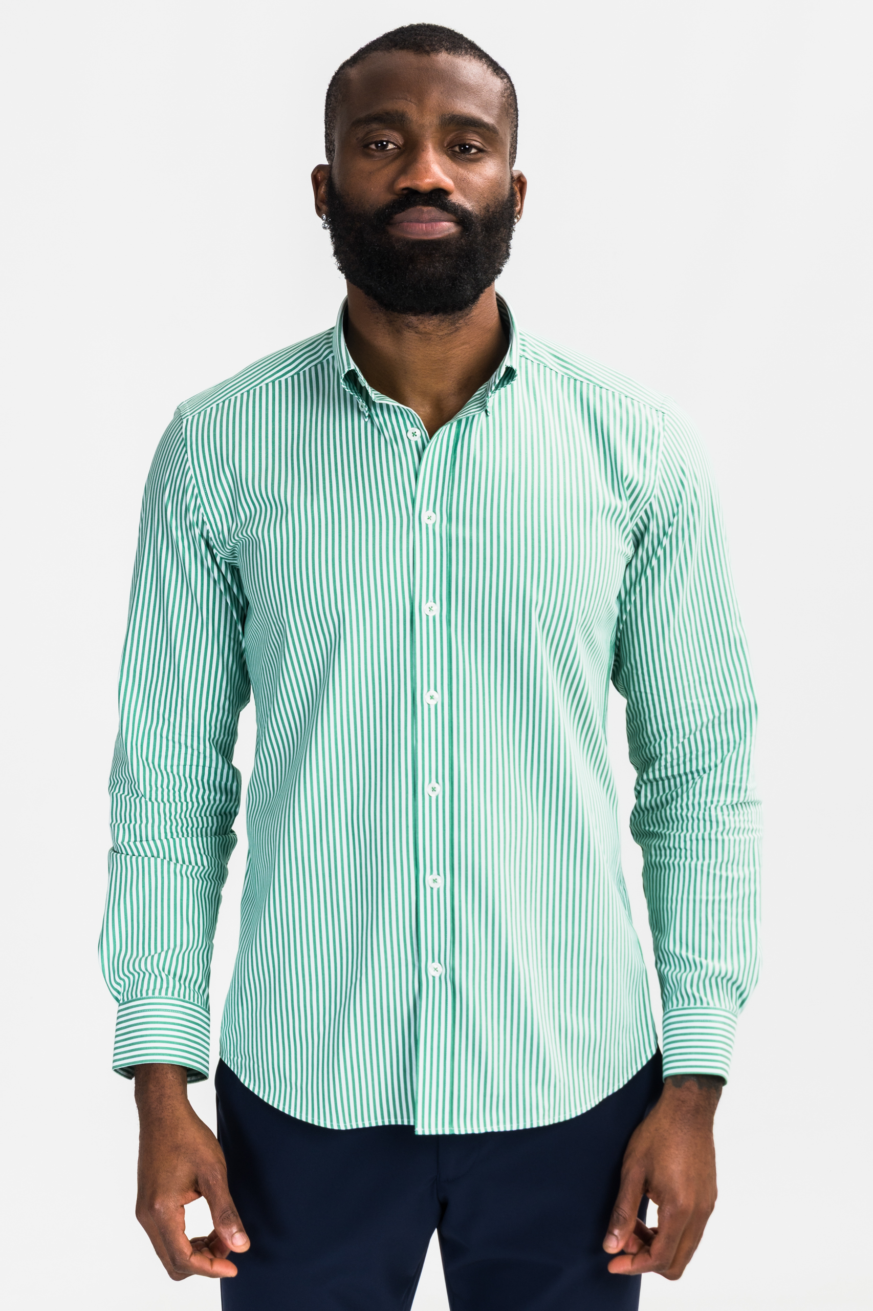 Focus Keyword: Green and White Striped Oxford Shirt