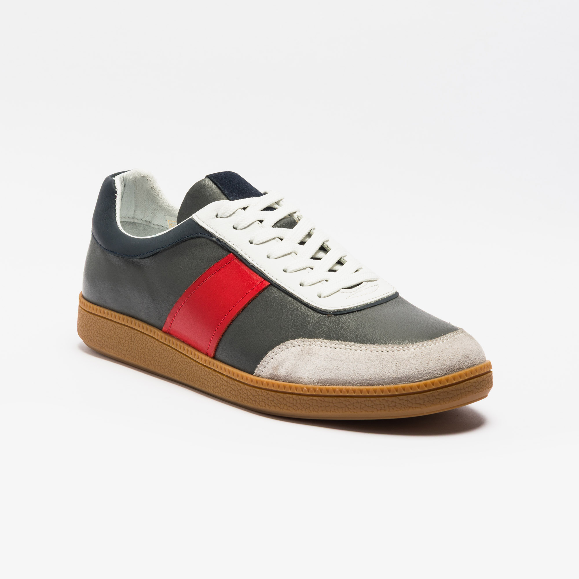 Its lightweight build enhances natural foot movement, while the supportive interior ensures comfort whether worn for walking, work, travel, or daily activities. The brown sole provides unique character and subtle rugged appeal, making this sneaker easy to pair with jeans, joggers, chinos, and smart-casual looks. The grey white red core sneaker with brown sole delivers lifestyle versatility and refined detail for customers seeking footwear that stands out without being overwhelming. This sneaker is ideal for individuals who want performance, comfort, and contemporary style in one design, catering to both fashion-driven buyers and those who prioritize practicality in everyday footwear.