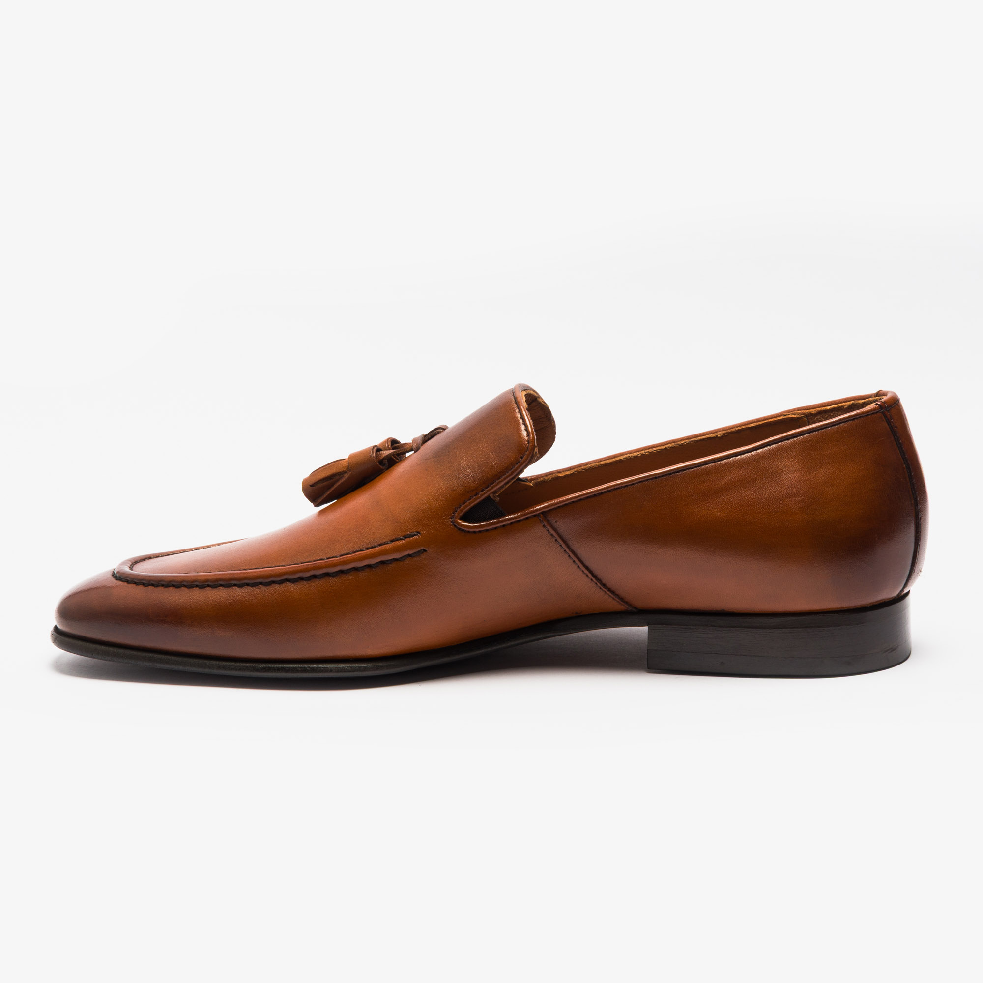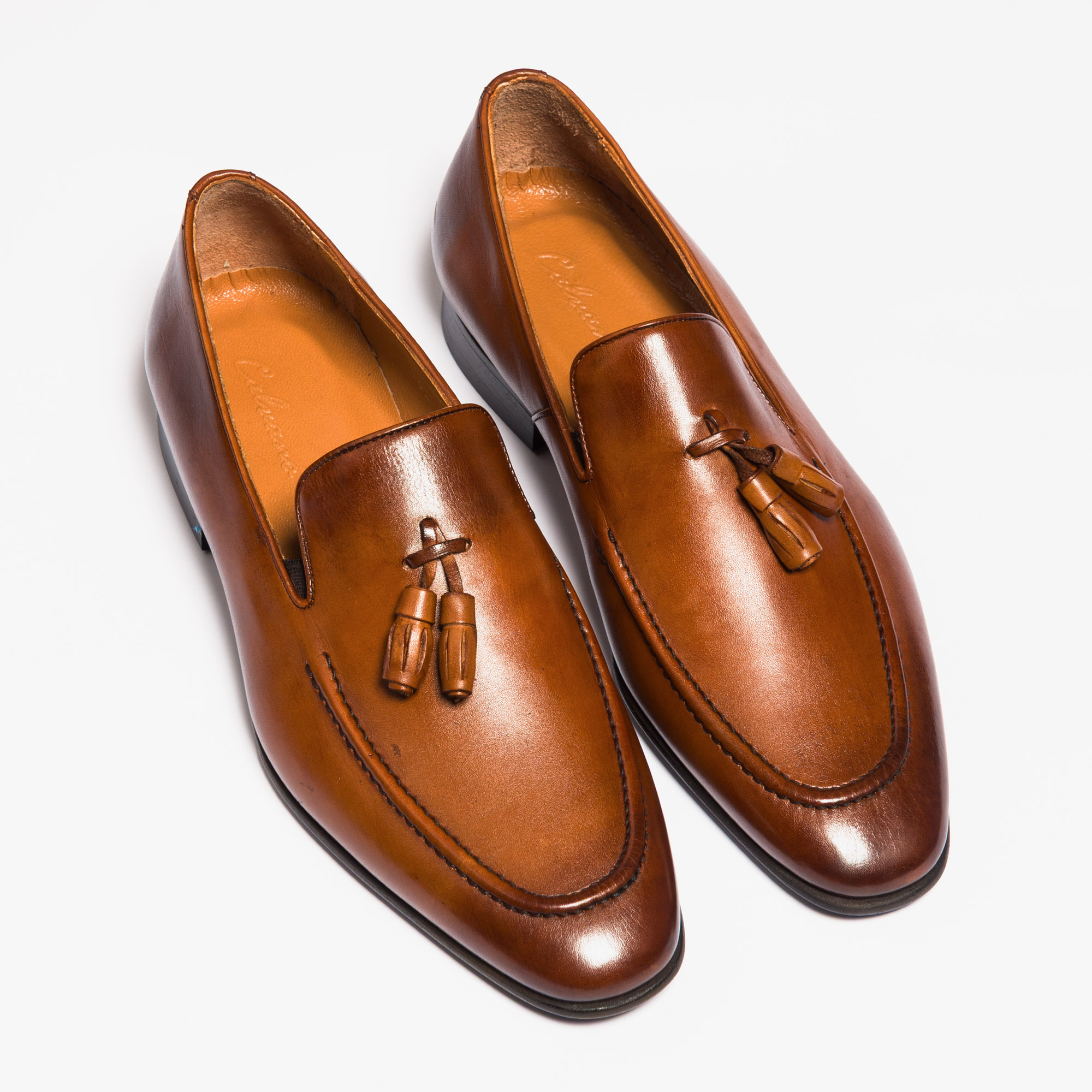 Crafted from high-quality leather, the light brown formal tassel loafer delivers long-lasting durability and exceptional comfort. Its meticulous stitching, smooth texture, and carefully shaped structure showcase expert craftsmanship, making it a standout choice in any wardrobe. The cushioned insole ensures comfortable wear throughout the day, whether you’re navigating business meetings, attending formal events, or elevating a casual weekend look.