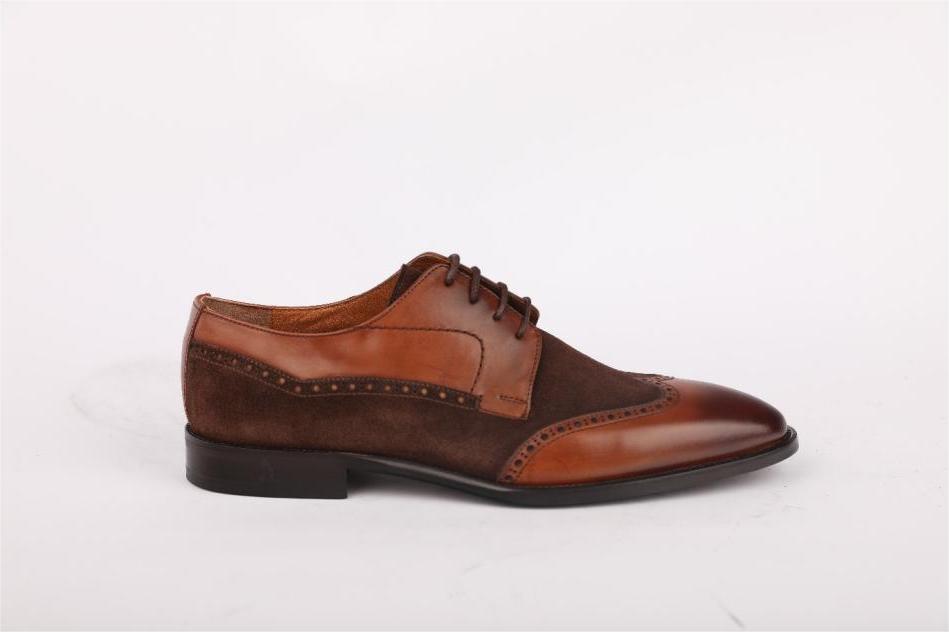 light brown leather and brown suede lace-up formal shoes for men