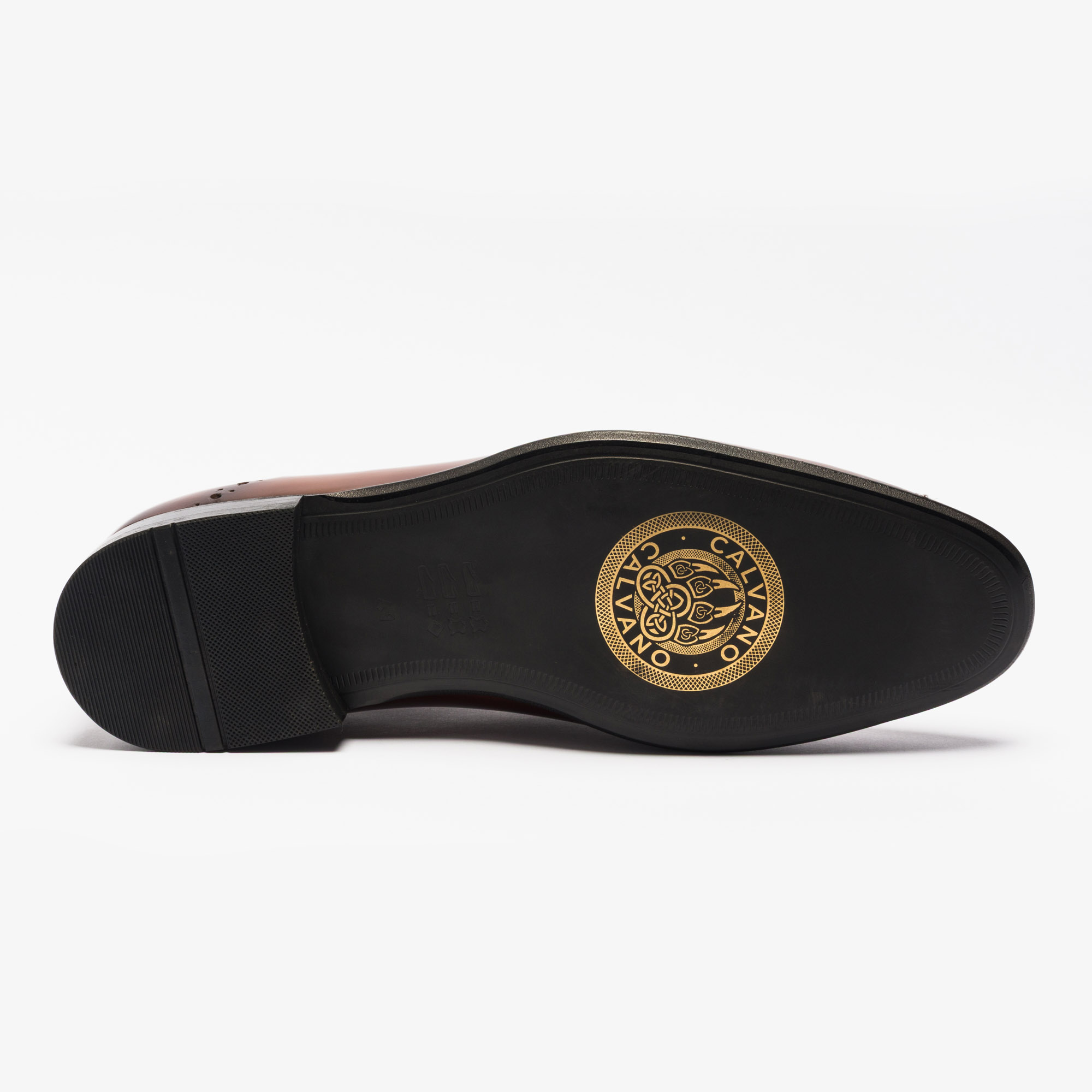 * Men’s polished leather dress shoes with brogue detail
