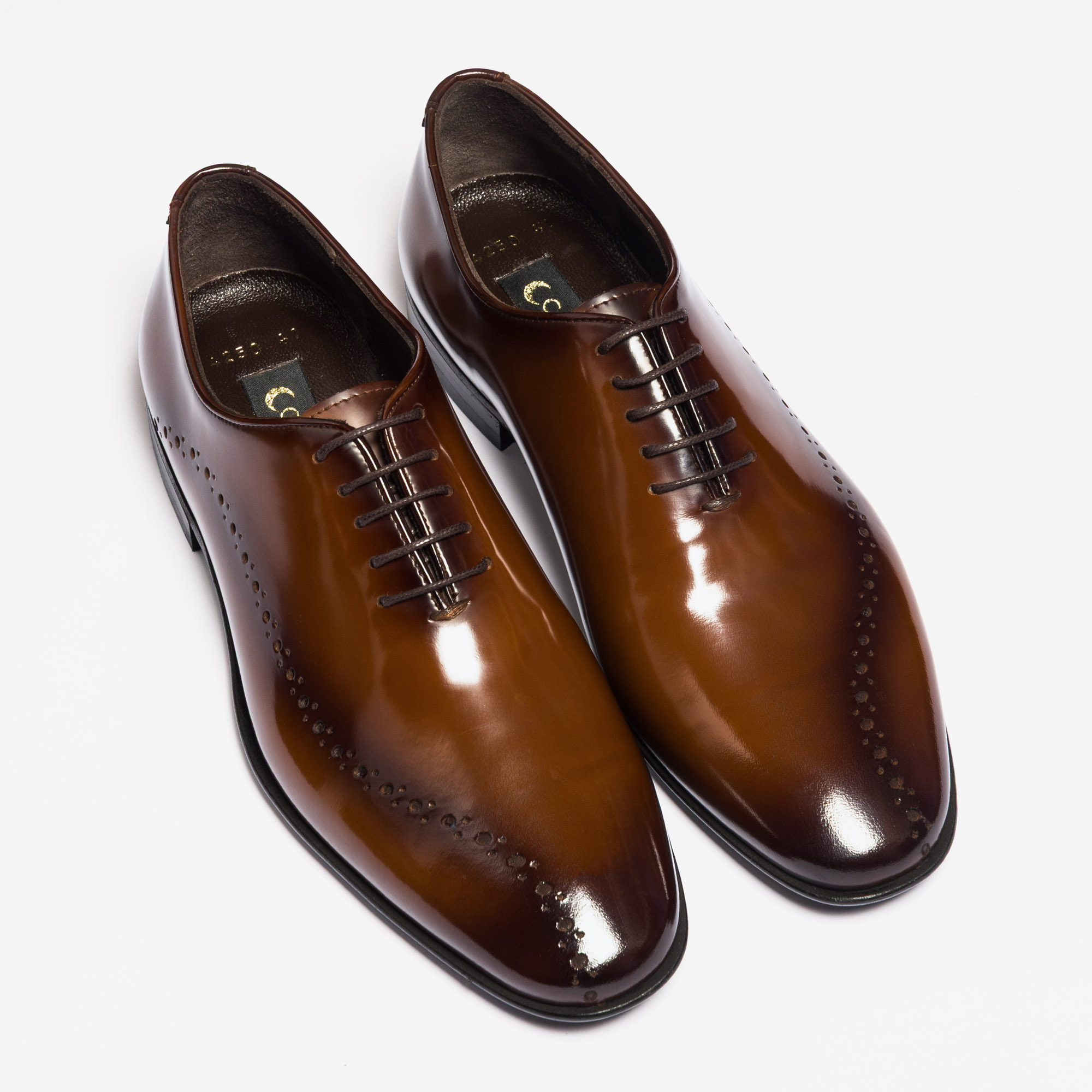 * High-gloss leather wholecut shoes for men