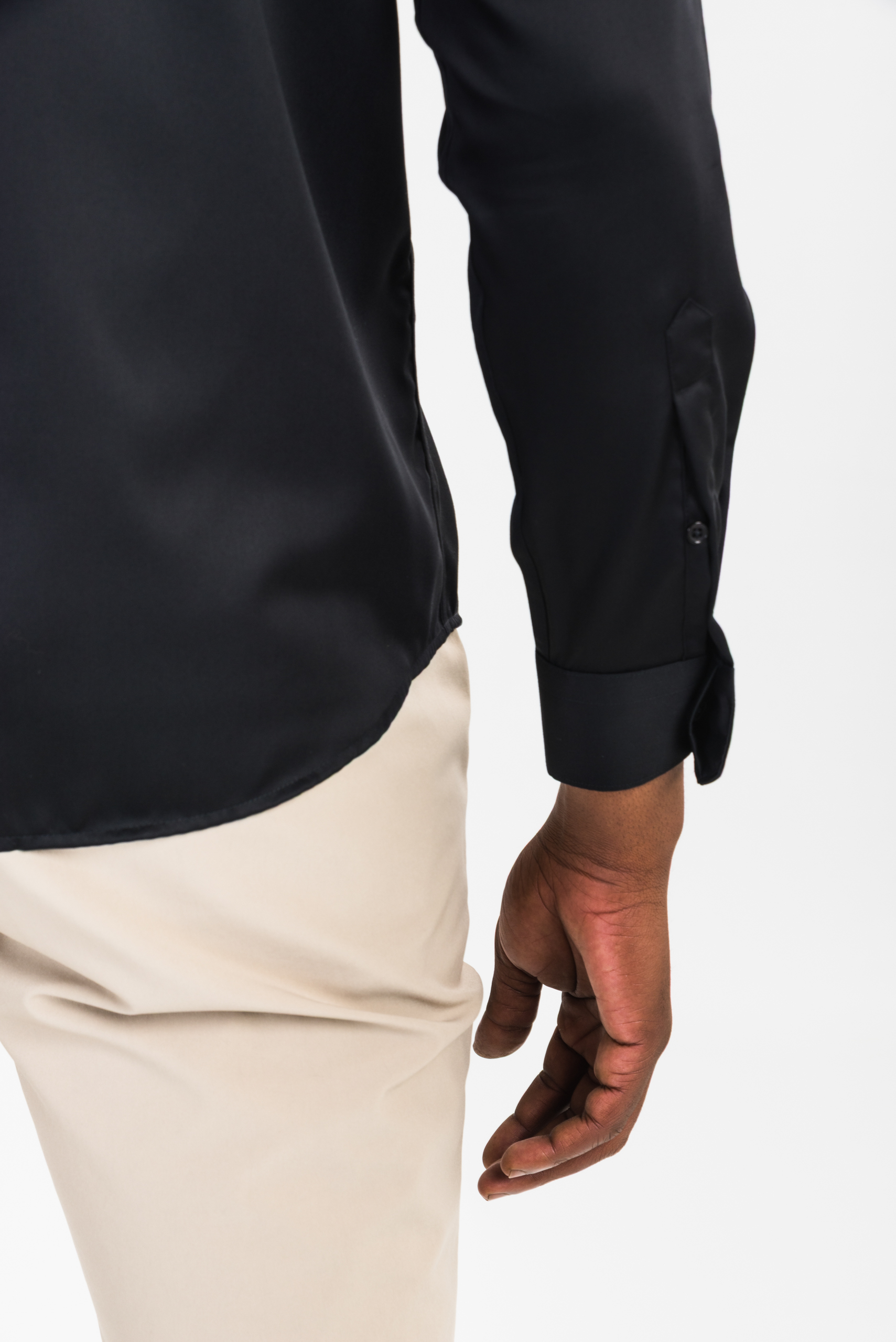 Combining timeless color, fabric excellence, and performance-driven design, this men’s black non-iron cotton shirt provides a high-value solution for those seeking durability, elegance, and convenience in a single garment.