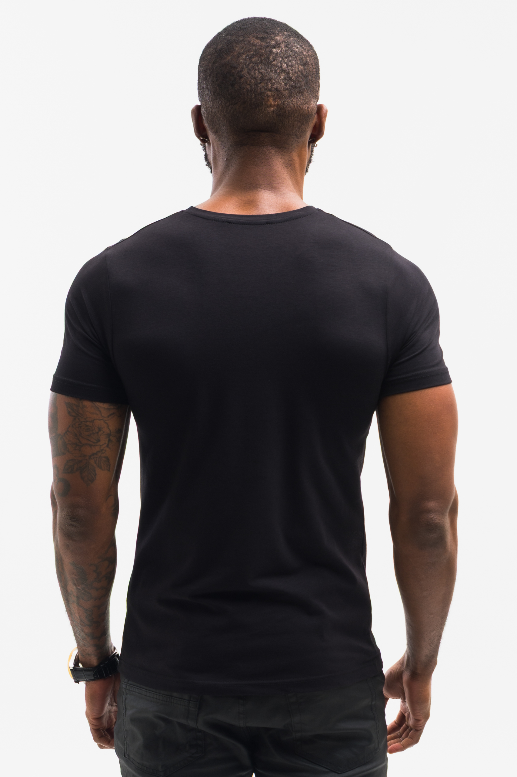 This men’s black embellished leopard graphic T-shirt is a bold luxury statement crafted for the modern man who embraces confidence, individuality, and premium style. Made from a soft, breathable, high-stretch cotton blend, this designer tee offers exceptional comfort while maintaining a fitted, athletic silhouette. The highlight of this striking T-shirt is the meticulously designed leopard artwork—composed of hundreds of shimmering rhinestones in gold, black, white, and red accents. The embellishment creates a dynamic, textured visual effect that captures the power and intensity of the leopard, making it the ultimate statement piece for nights out, refined casual looks, or standout streetwear fits.