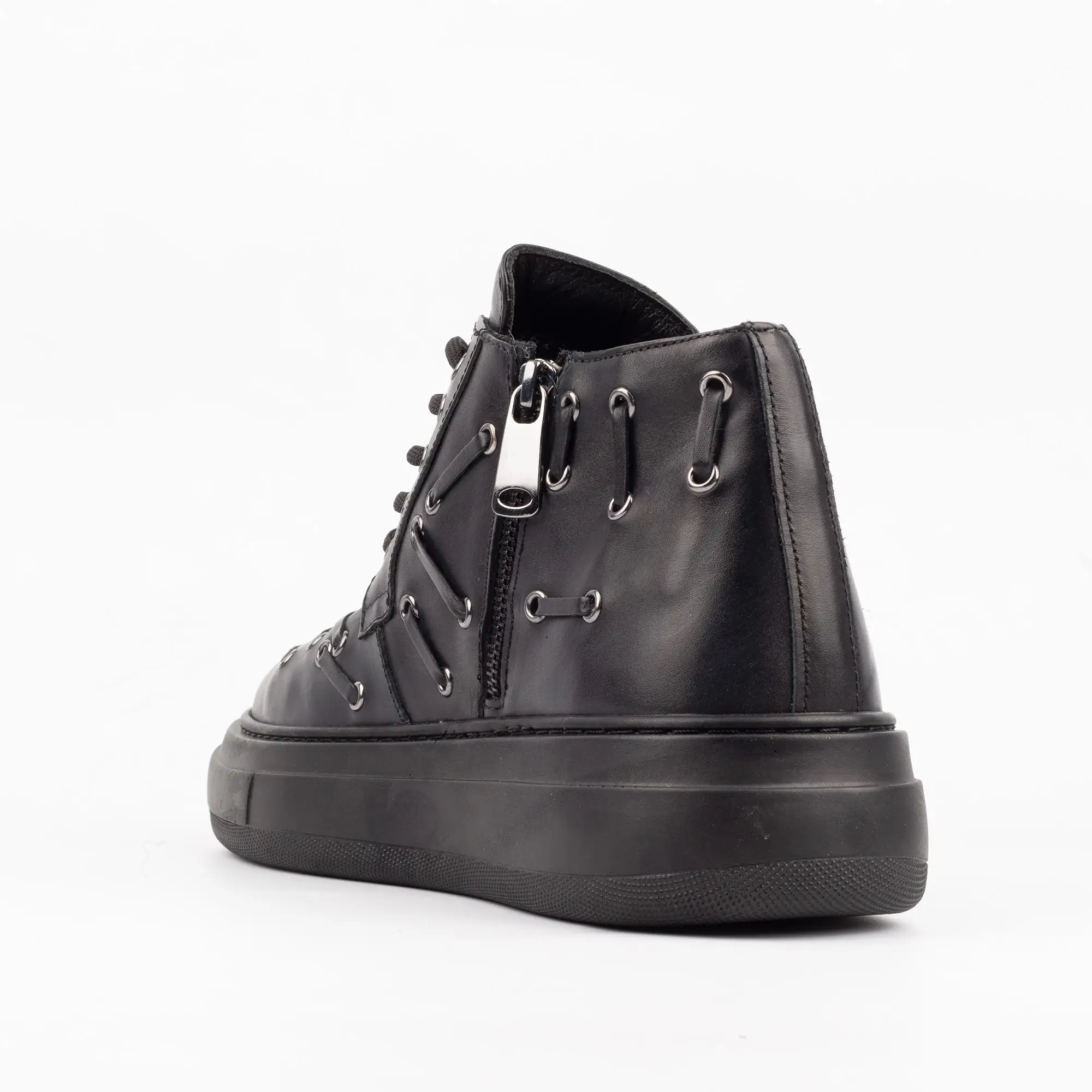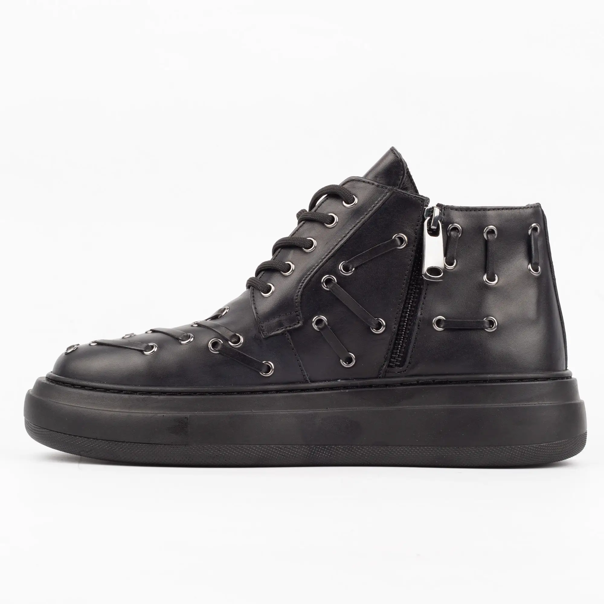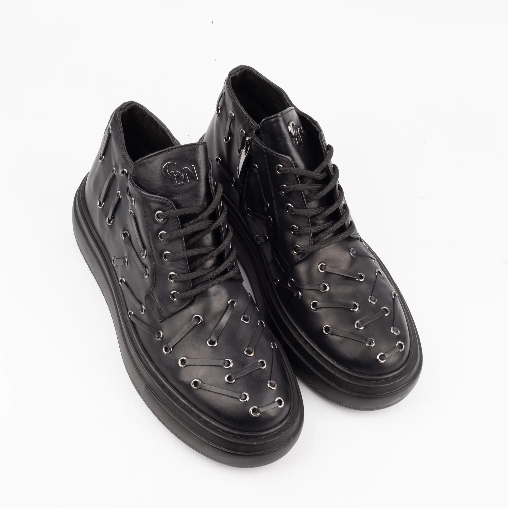 These high-top mens black leather sneakers are engineered for impact, blending the rugged appeal of a boot with the comfort of urban style footwear. The chunky, resilient rubber sole provides an elevated silhouette and exceptional grip, ensuring you stride with confidence whether navigating city streets or making an entrance at any Mzansi gathering. They are a truly versatile statement piece, ready to complement tailored trousers or premium denim.