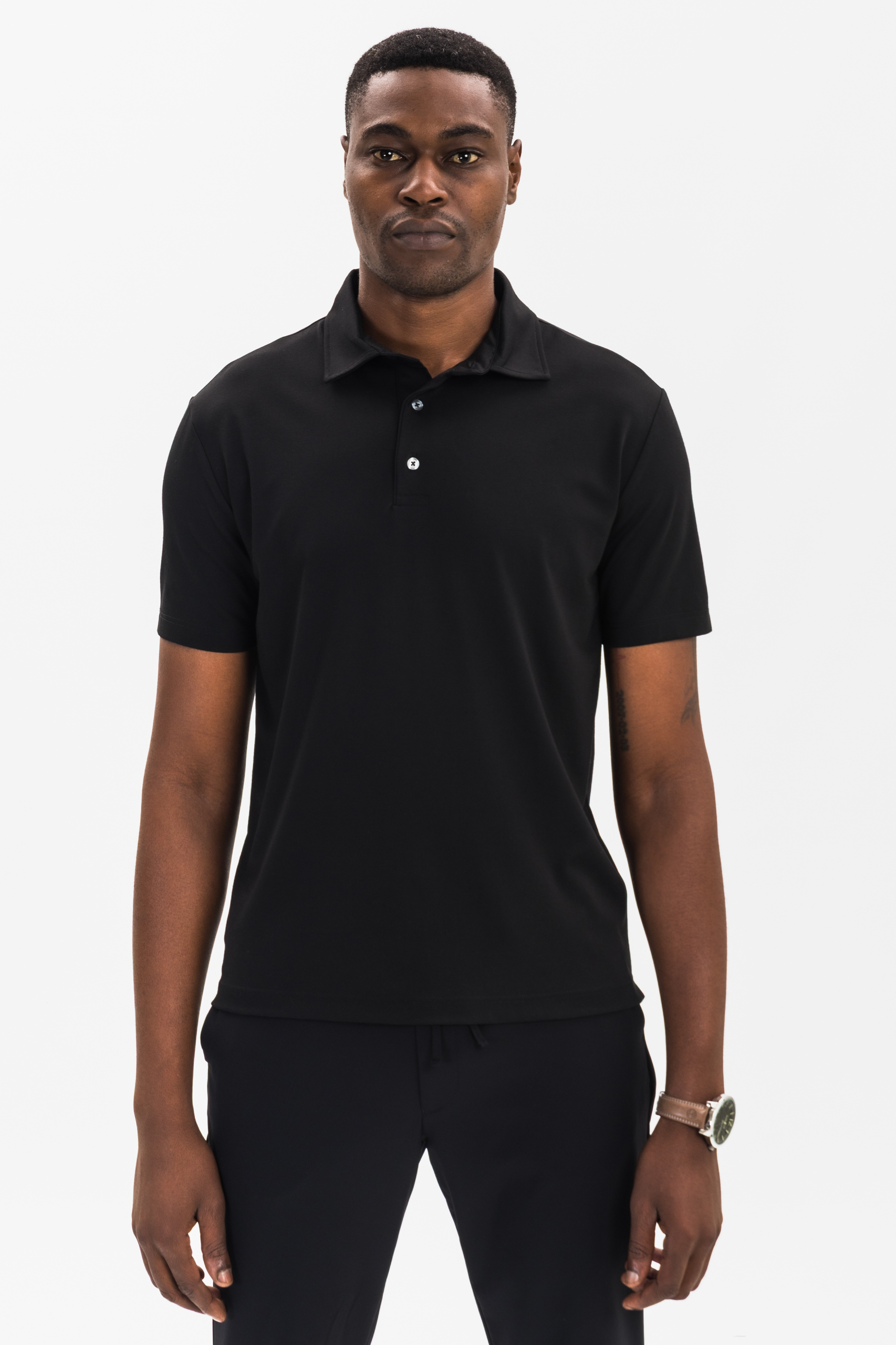 modern essential black polo tee