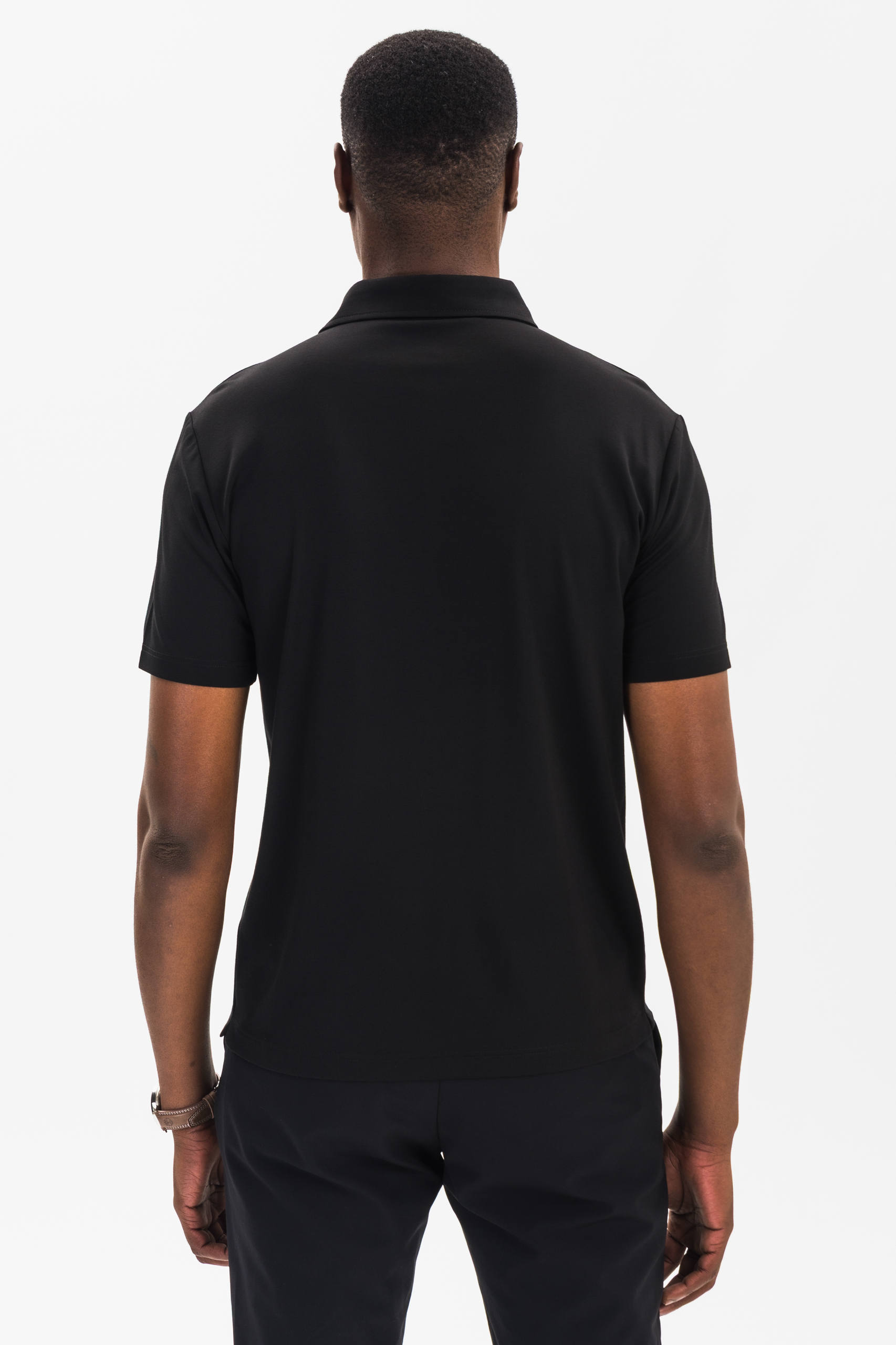 This black premium fitted polo excels in versatility. Pair it with chinos or tailored trousers for a refined, semi-formal look, or combine it with denim and sneakers for a more relaxed fit. The minimalist design eliminates distractions, making it a go-to essential for men who appreciate subtle, premium detailing and high-performance fabric.