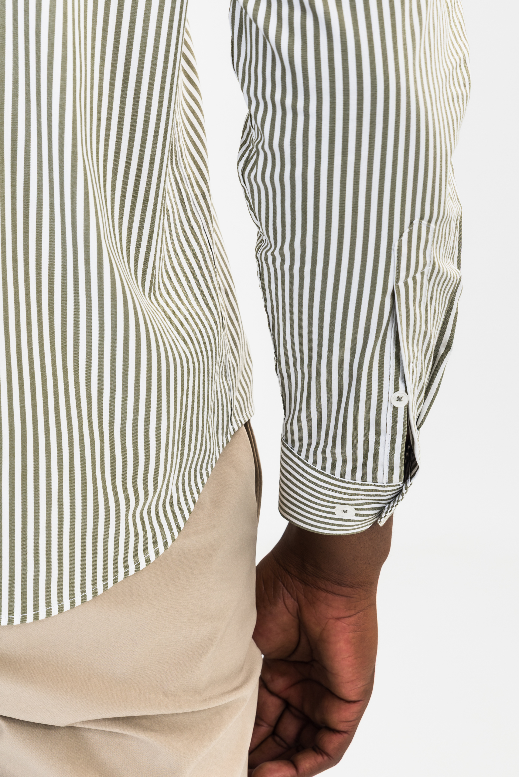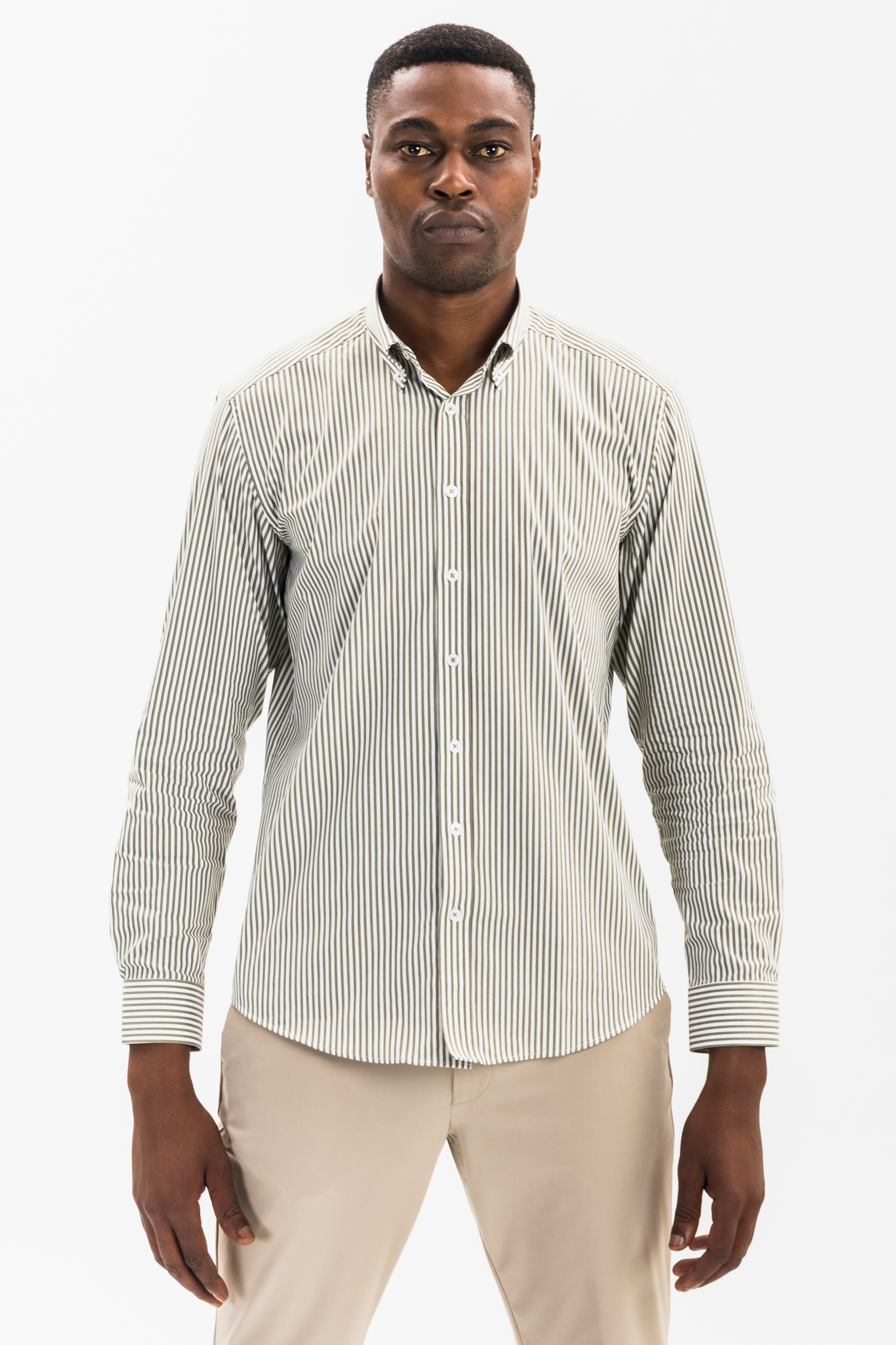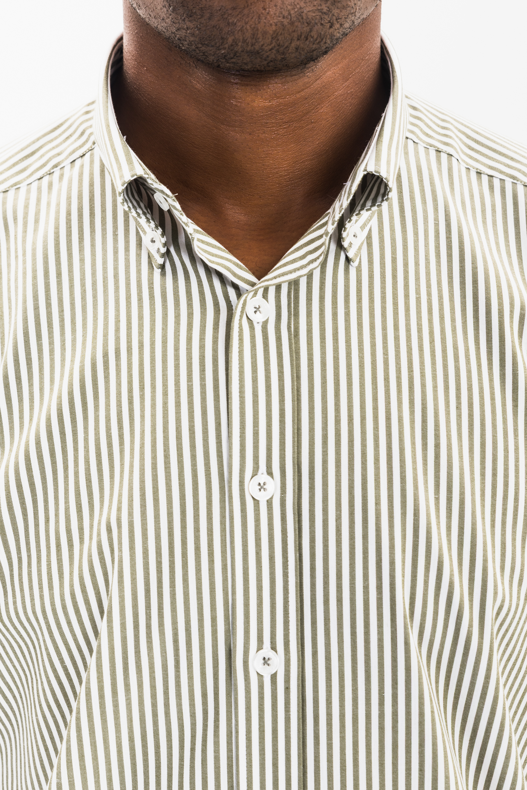 Focus Keyword: men’s dark green and white striped Oxford shirt