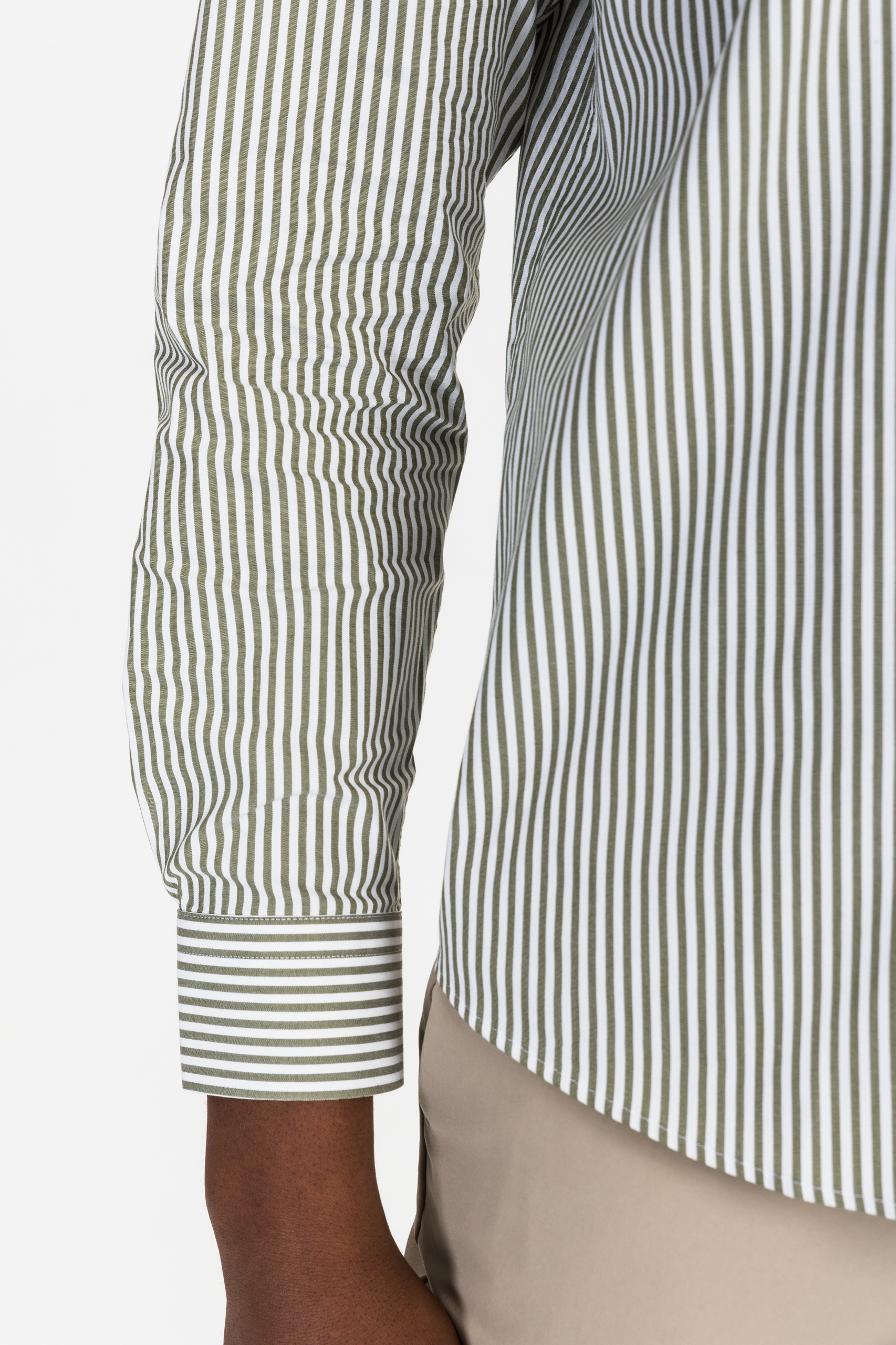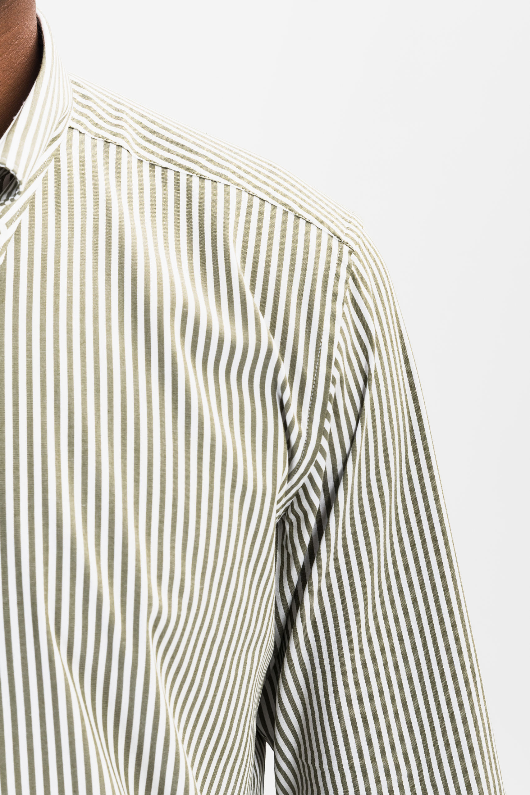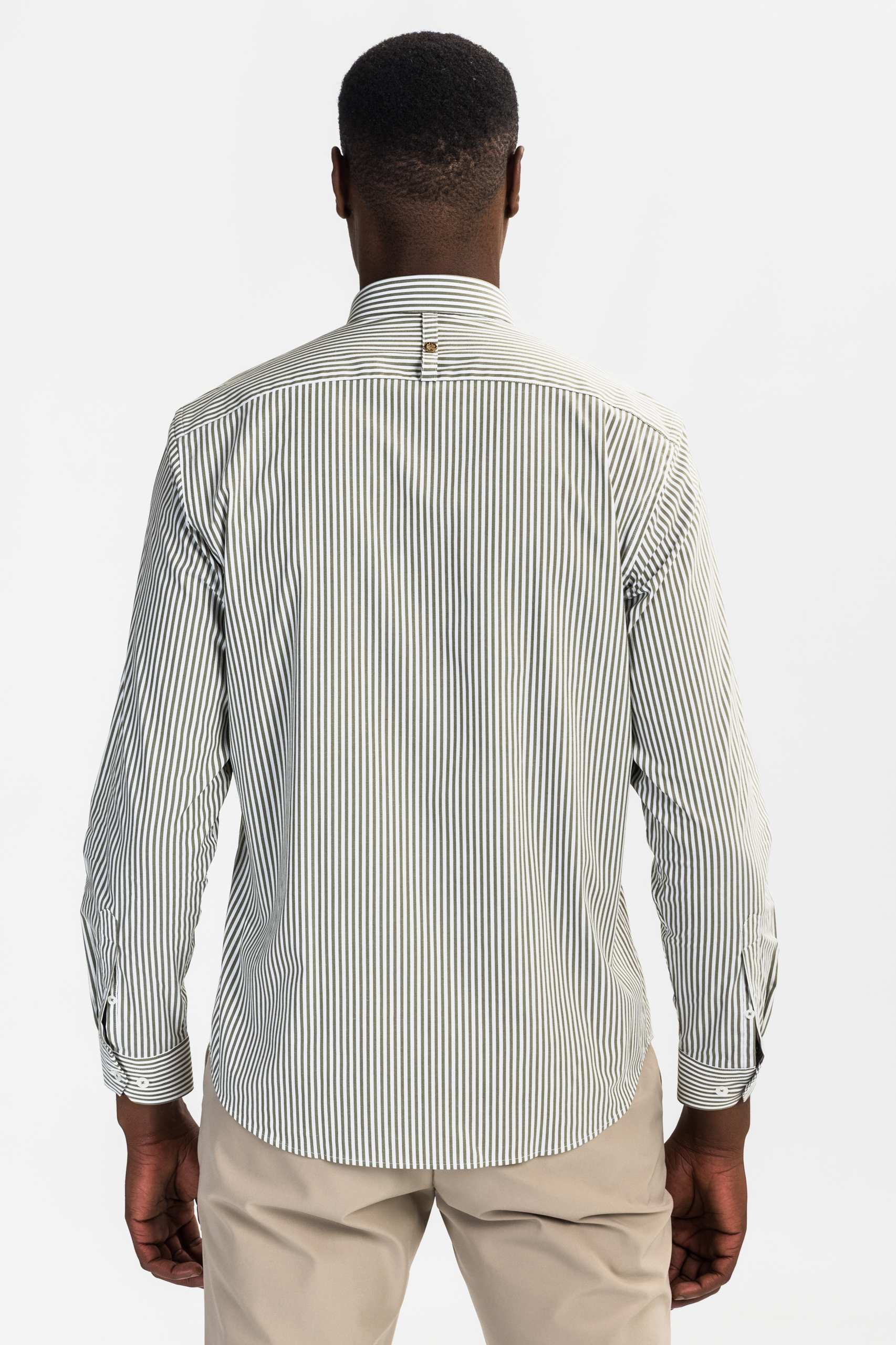dark green striped Oxford shirt