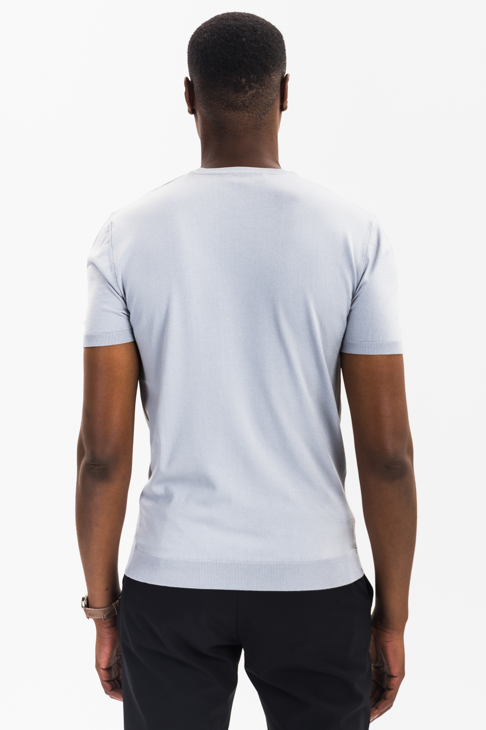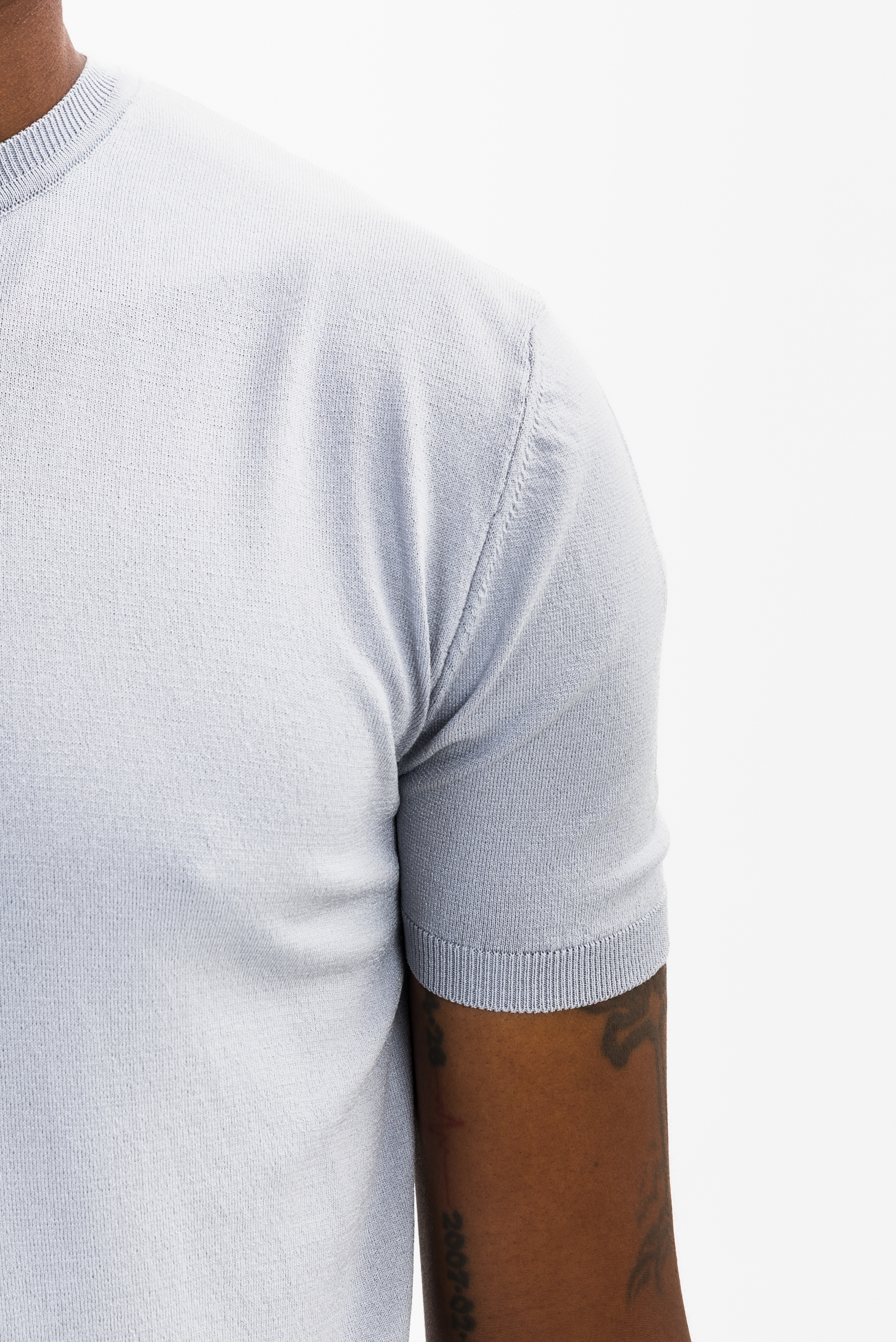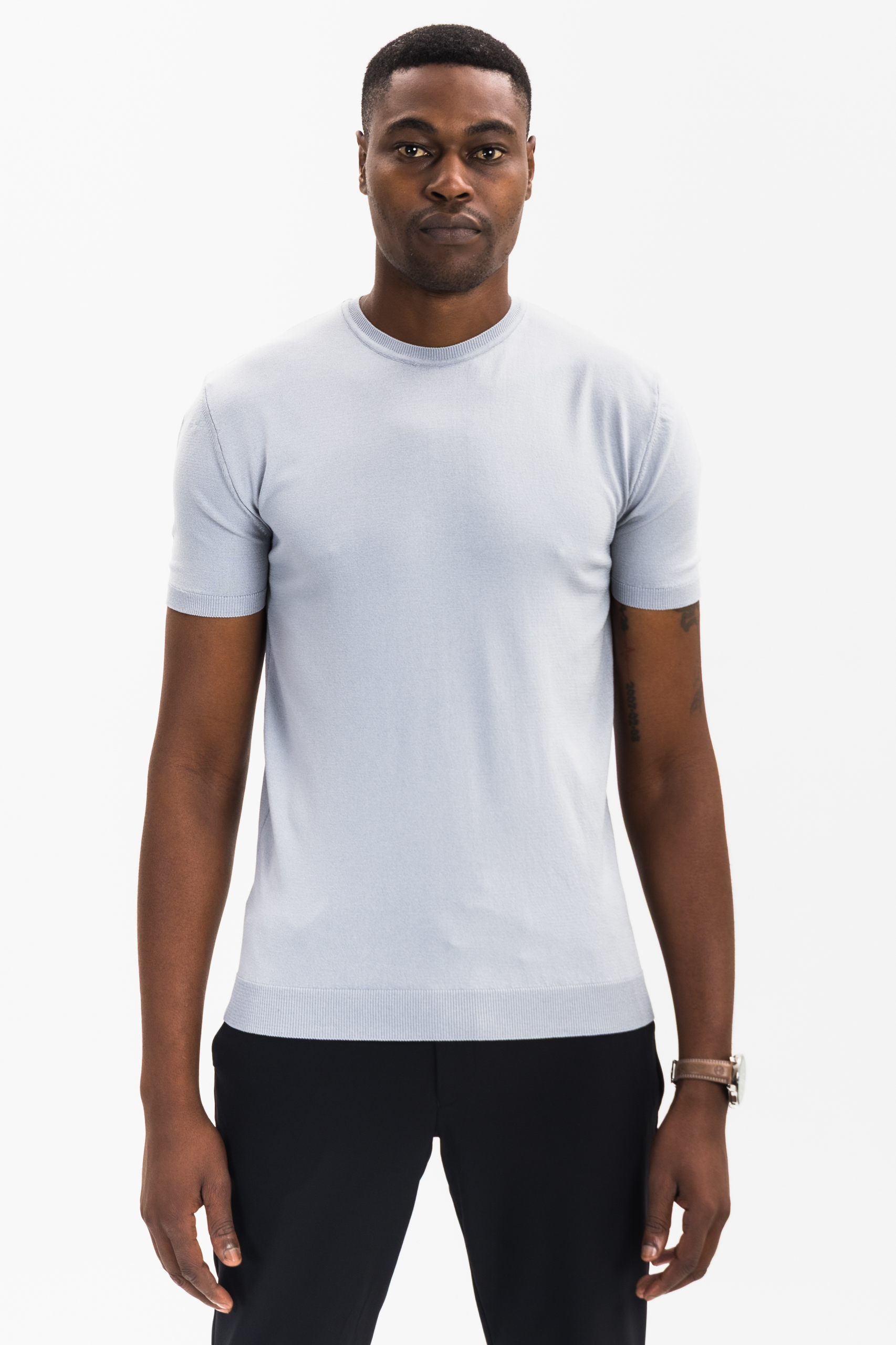 Focus Keyword: men’s sky blue knit short sleeve t-shirt