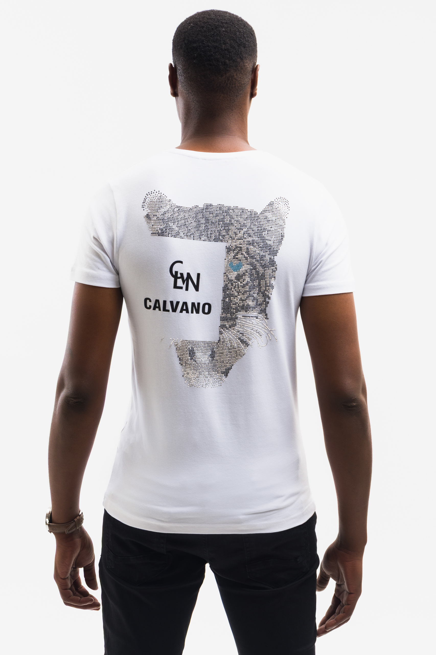 Perfect for men who appreciate designer fashion with artistic flair, this white Calvano rhinestone tiger back graphic T-shirt combines luxury craftsmanship with modern streetwear influence. Whether worn casually or styled for upscale outings, it adds instant sophistication and personality to any outfit. A standout piece for trendsetters, collectors, and anyone who values premium embellished design.