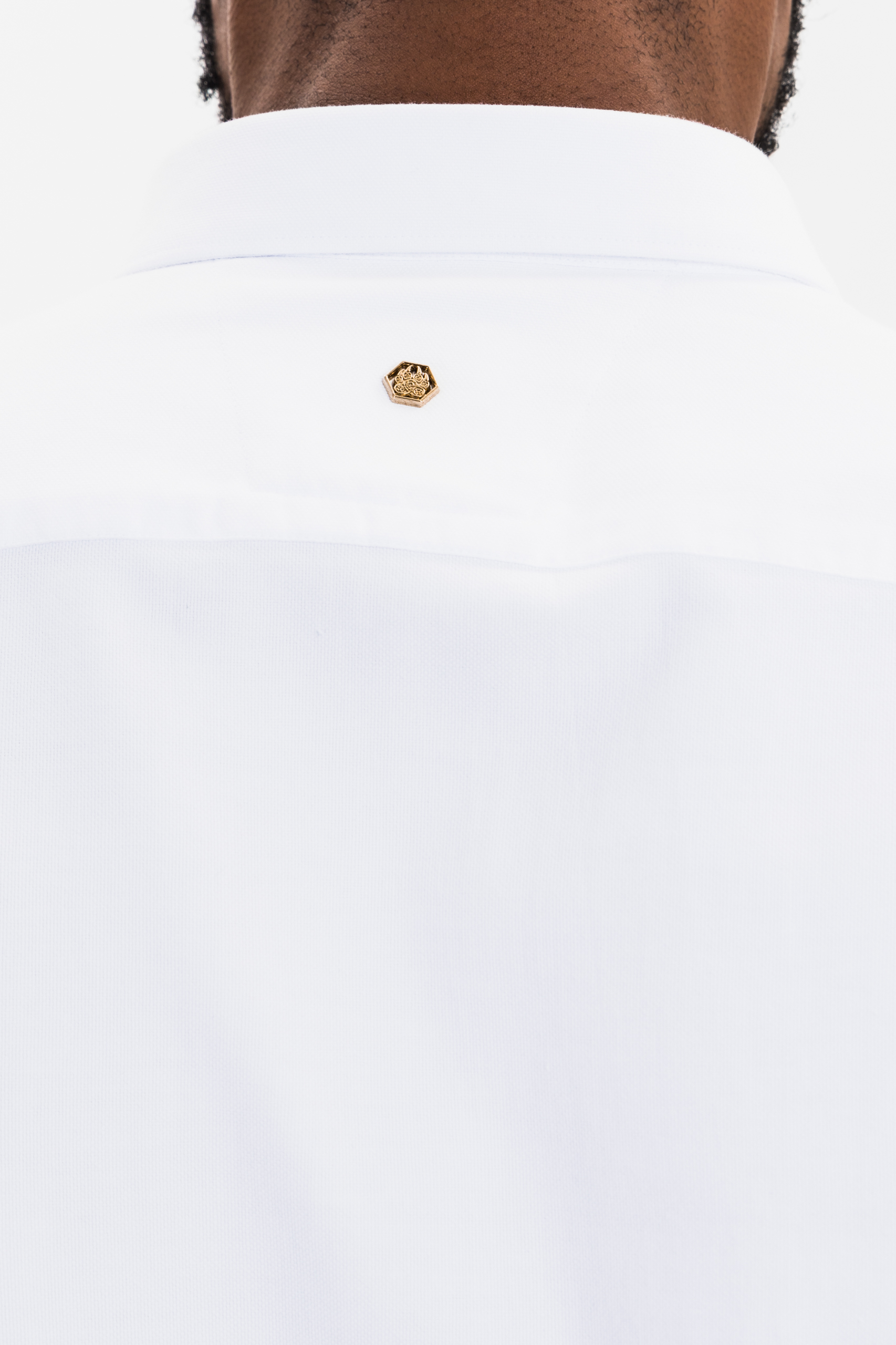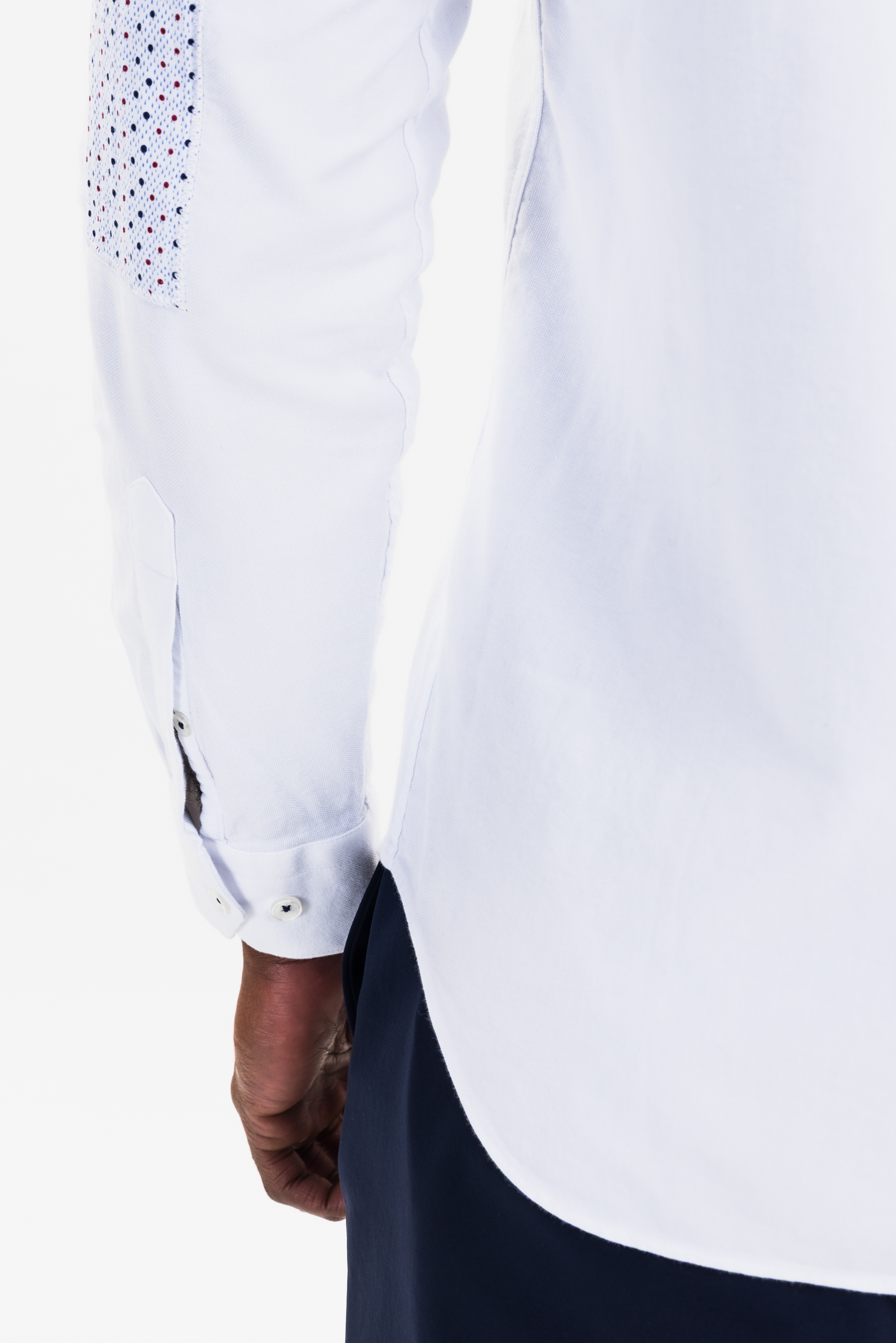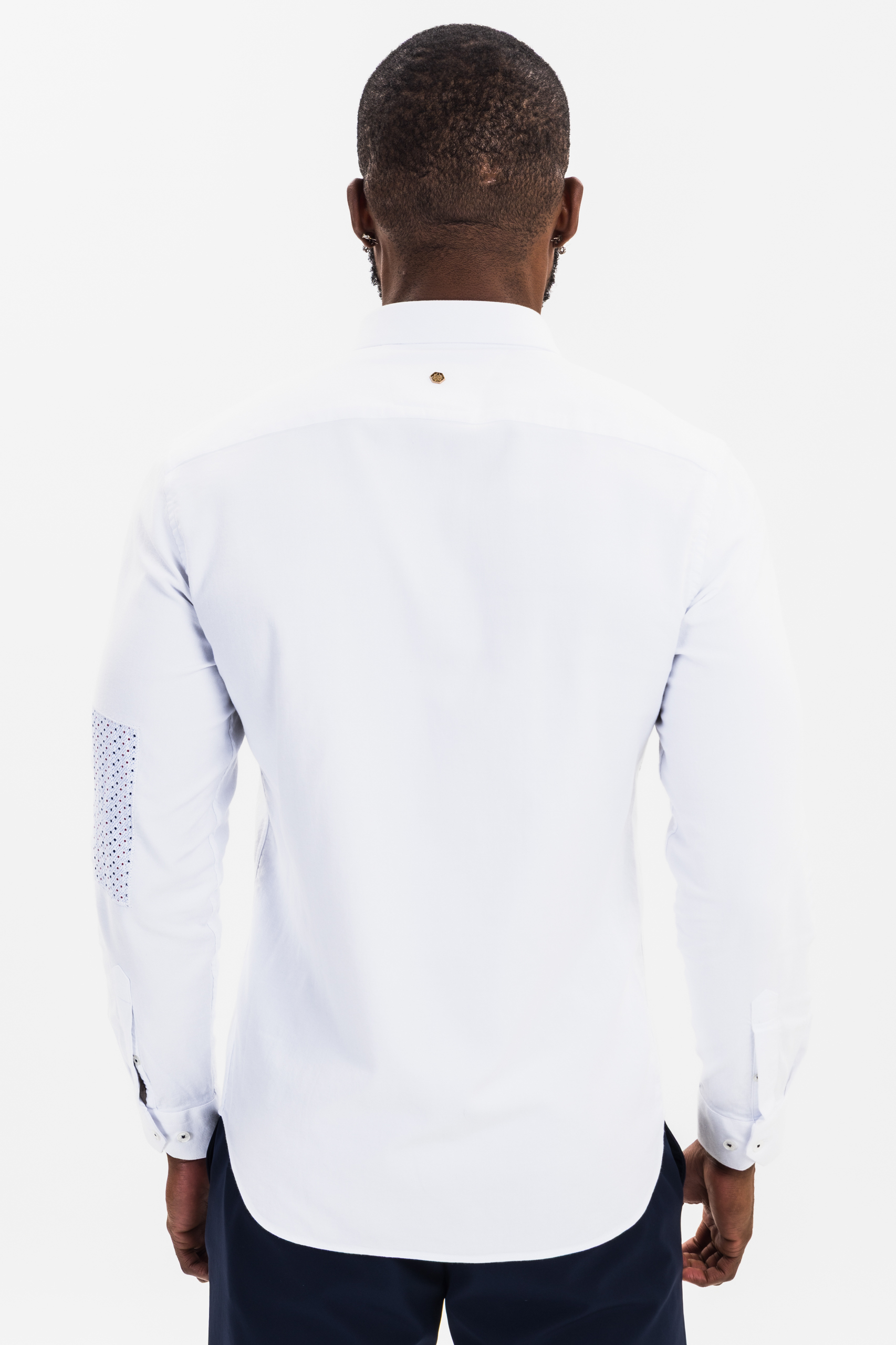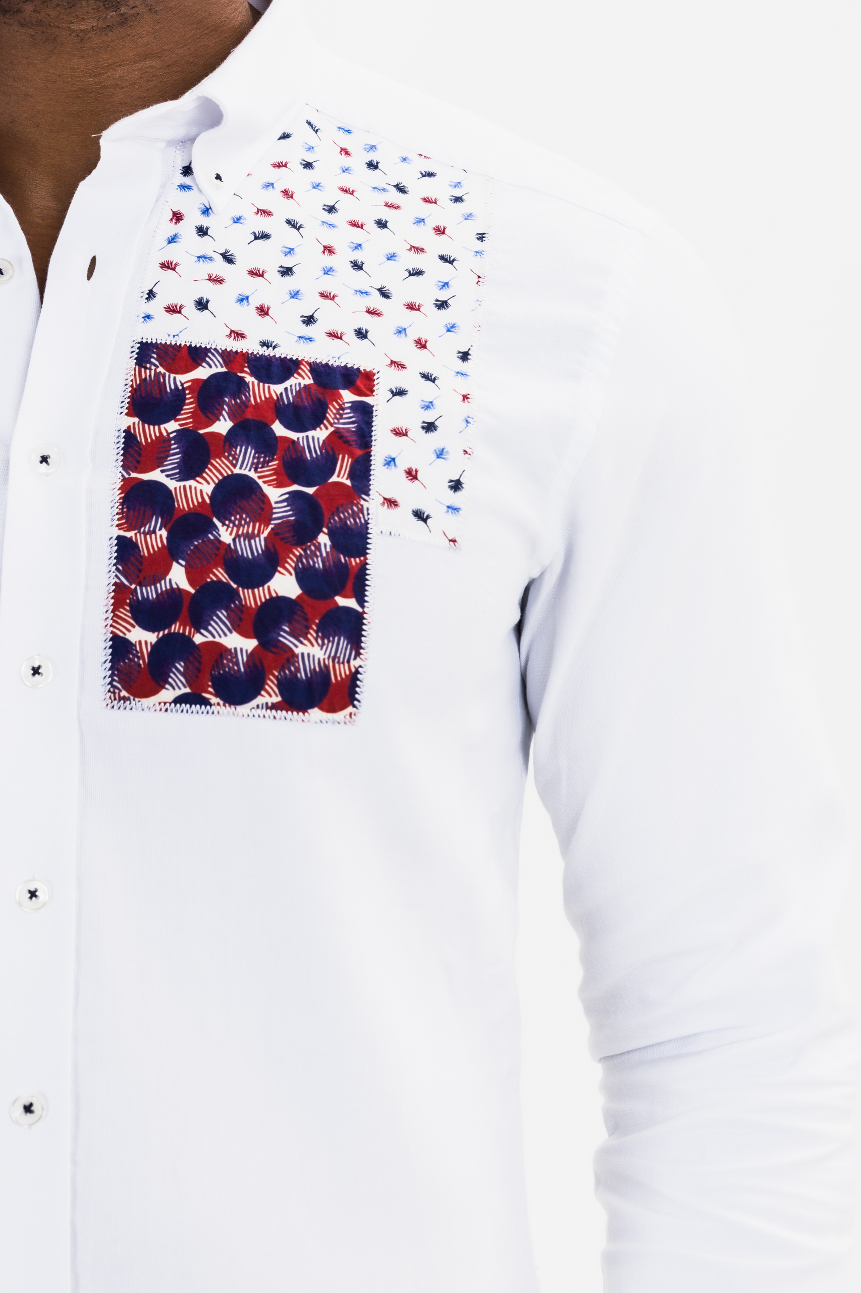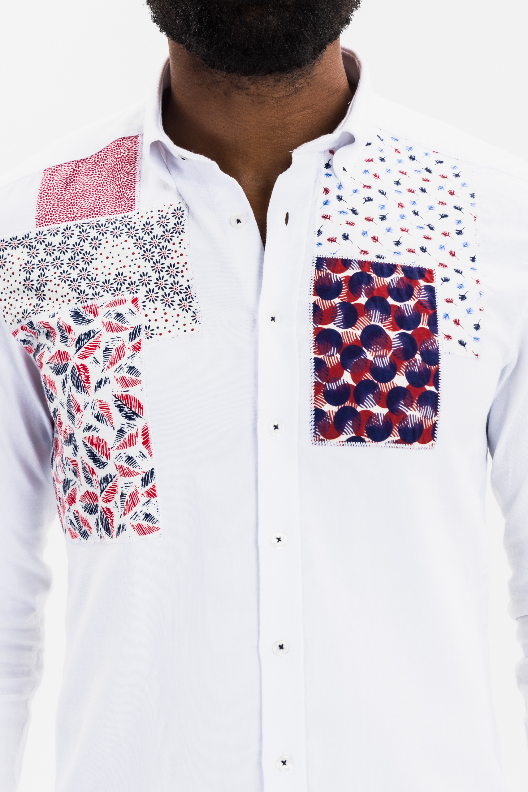 white patchwork button-down shirt for men