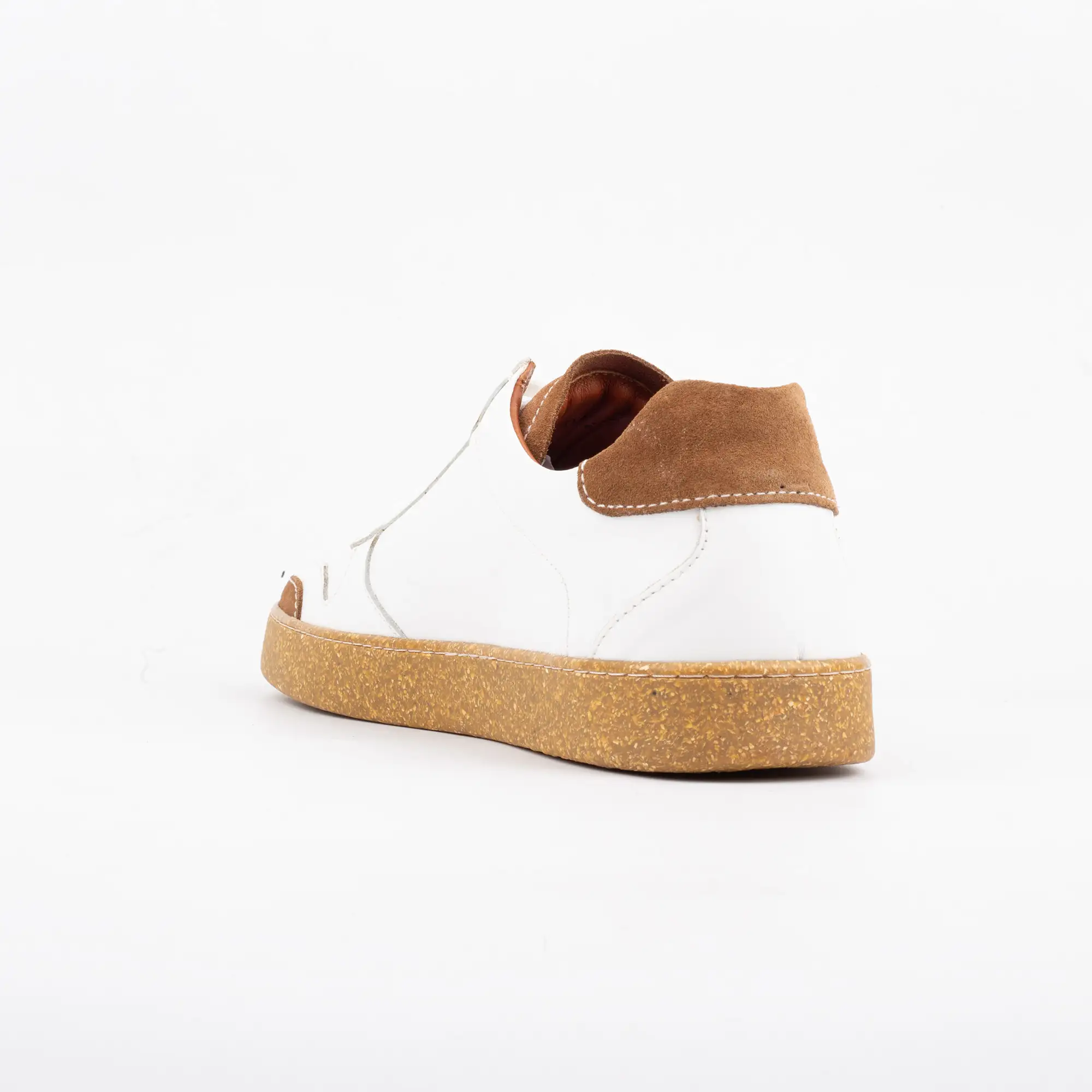 Q: How do I care for my White & Tan Leather Casual to maintain its pristine look? A: To keep your White & Tan Leather Casual looking its best, gently wipe the leather with a damp cloth and mild soap. For the unique tan sole, a soft brush can remove dirt. We recommend using a quality leather conditioner every few months to keep the leather supple and prevent cracking. Always air dry away from direct heat.