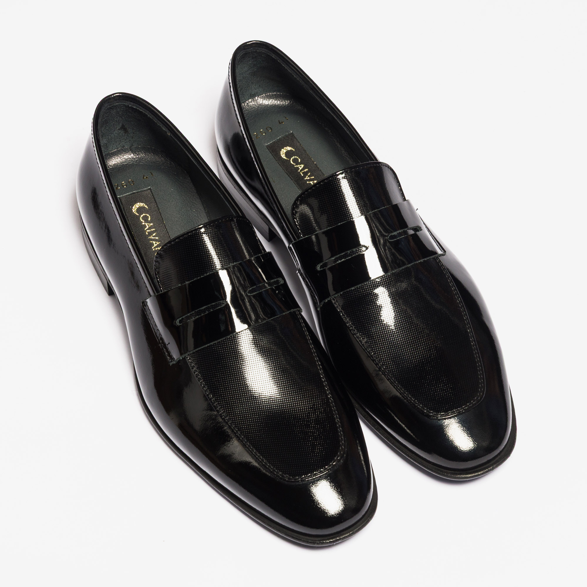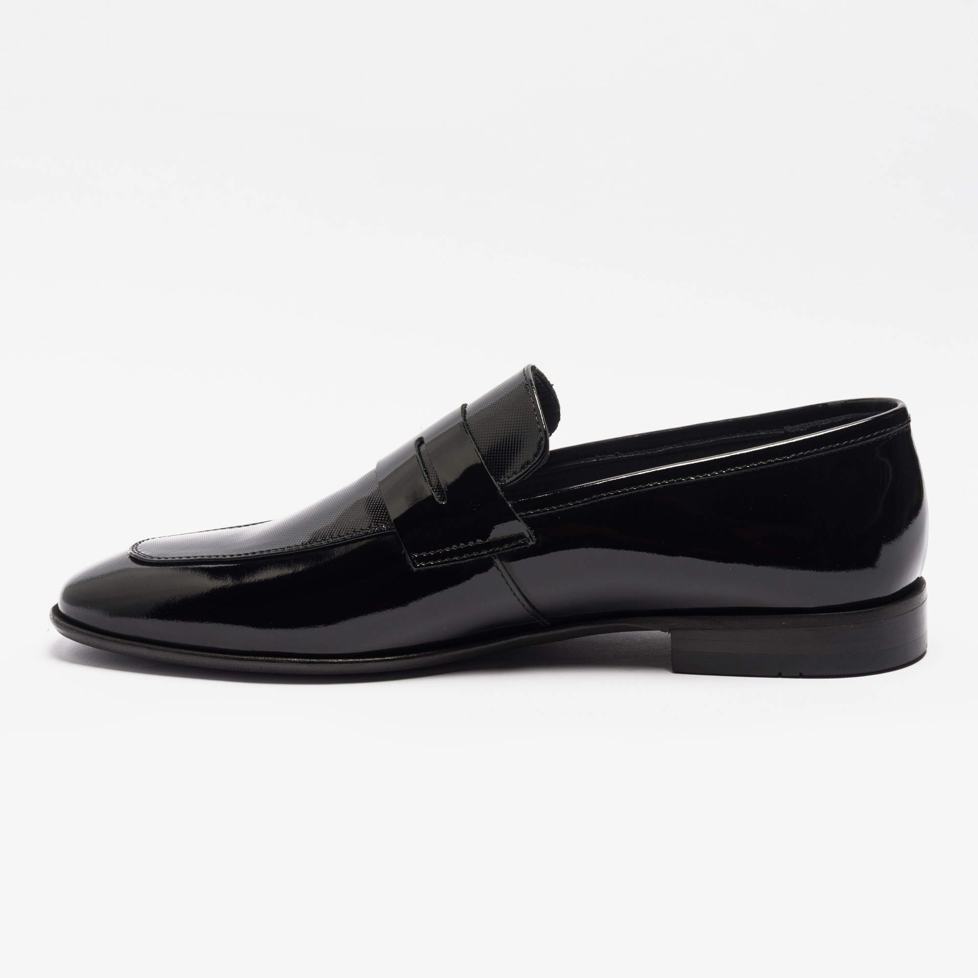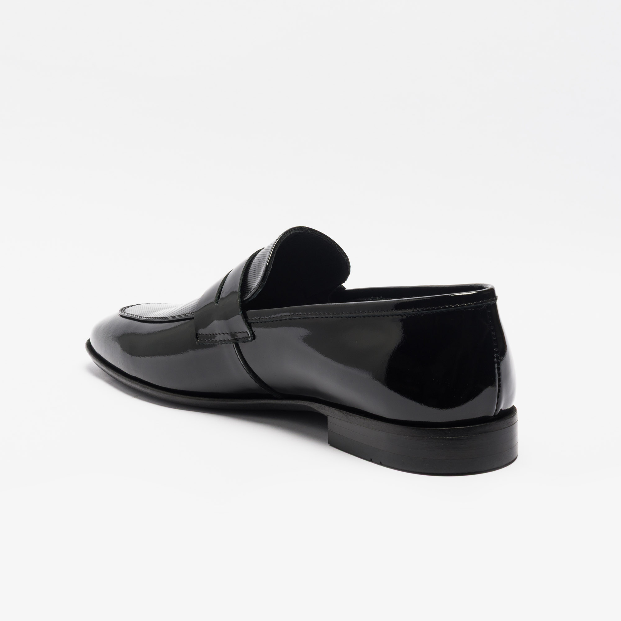 The interior is engineered for comfort, offering a soft footbed and supportive structure that ensures long-lasting wear without sacrificing style. The durable outsole provides balanced traction, making it ideal for all-day use. This black shinny patent leather loafer is perfect for men who want to combine comfort with luxury and modern design with classic style. Whether paired with tailored suits, slim-fit trousers, or elegant evening attire, it adds a polished finishing touch every time.