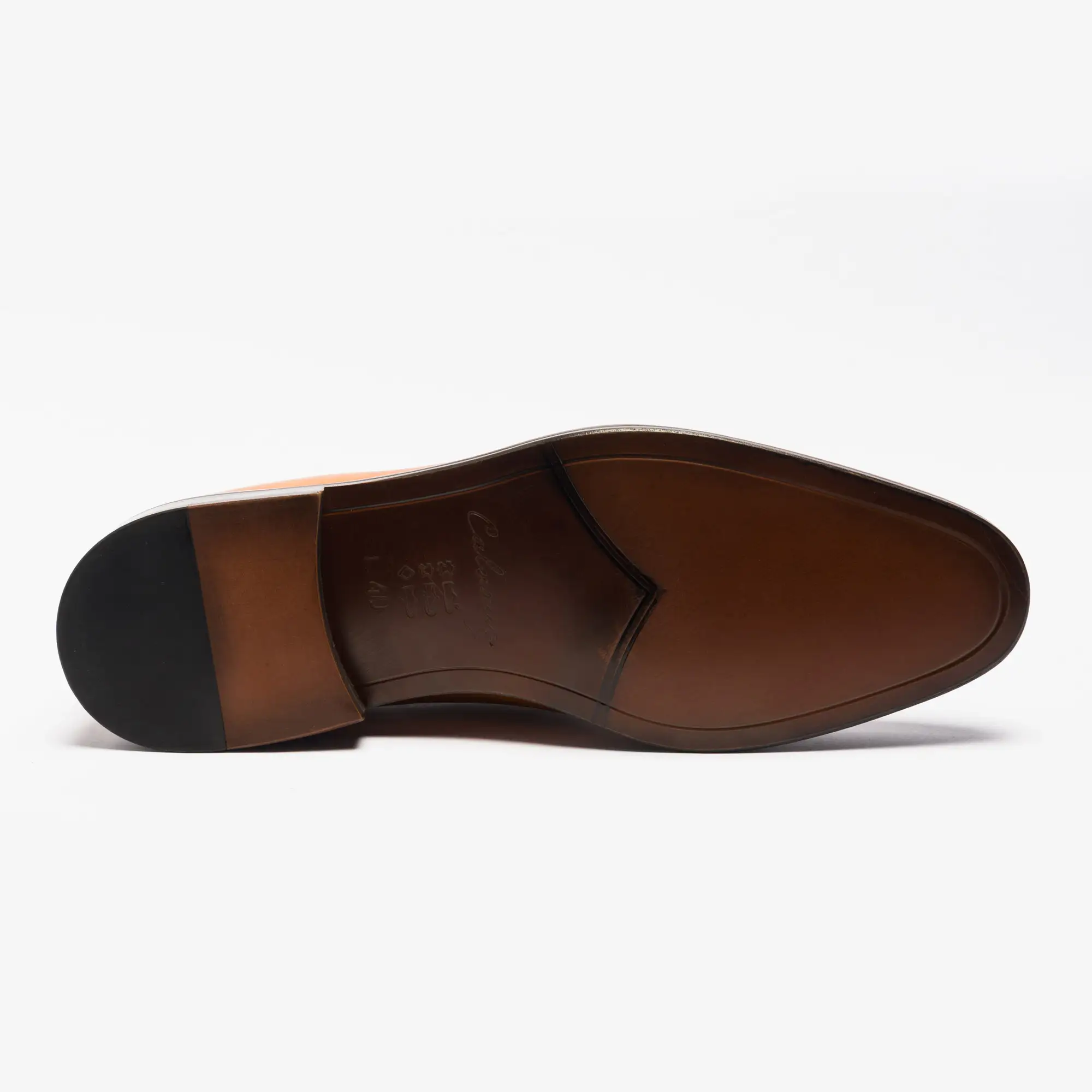 To maintain the rich patina and supple texture of the leather, we recommend regular maintenance. Begin by wiping away dust with a soft, damp cloth after each wear. Use a high-quality tan leather cream to nourish the hide and preserve the burnished effect. Avoid using harsh chemical cleaners that may strip the artisanal finish. We strongly advise the use of cedar shoe trees to maintain the shape of the upper and absorb moisture. Should the shoes become wet, allow them to air dry naturally away from direct heat sources like heaters or intense sunlight.