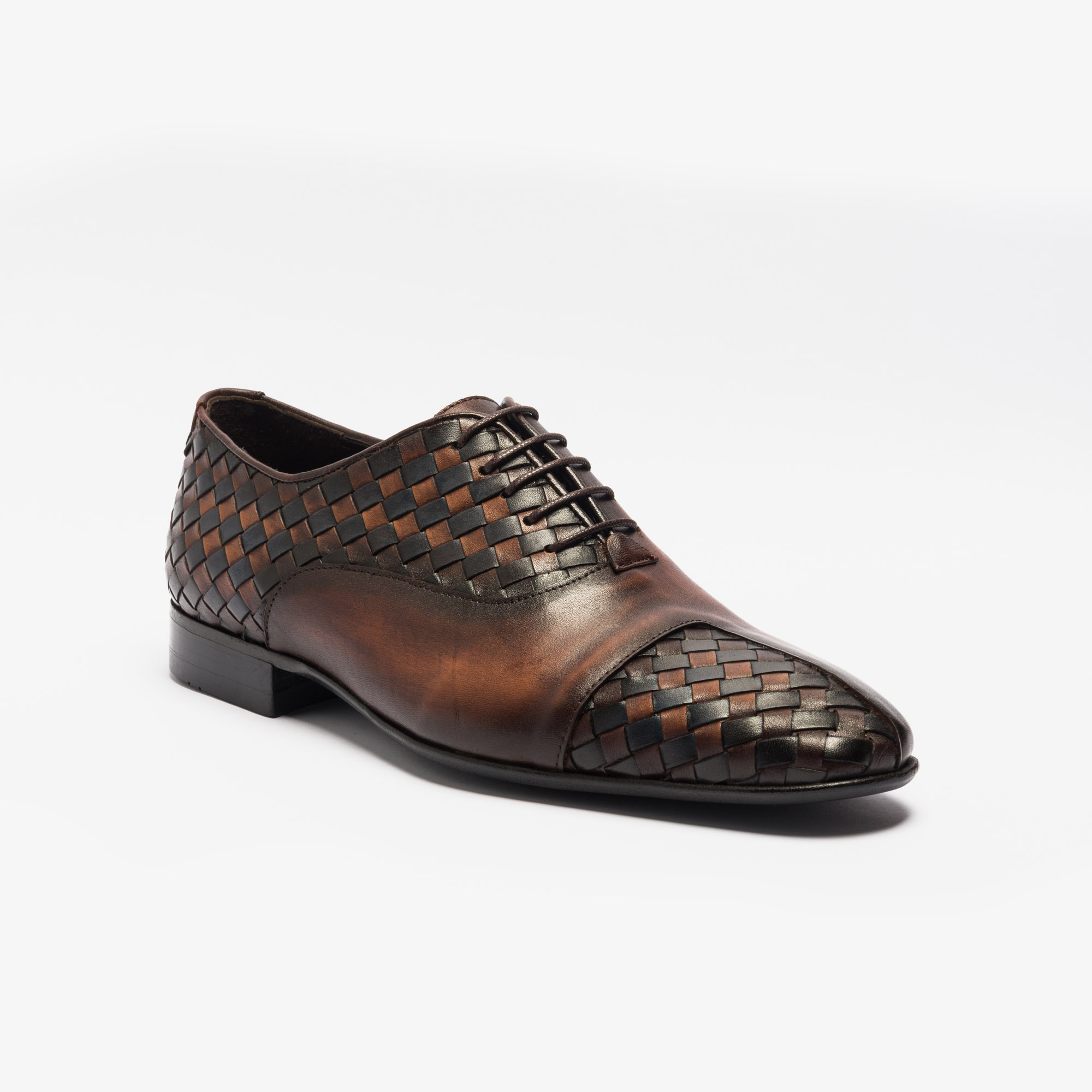 Step into sophistication and modern craftsmanship with the Men’s Acosta Basket Weave Oxford shoe in rich brown woven leather. Designed for men who appreciate luxury and style, these shoes combine timeless Oxford elegance with intricate woven leather detailing, making them perfect for formal events, business meetings, and upscale occasions. The basket weave texture across the vamp, toe, and heel adds a distinctive, stylish dimension, elevating the classic Oxford design with contemporary flair.