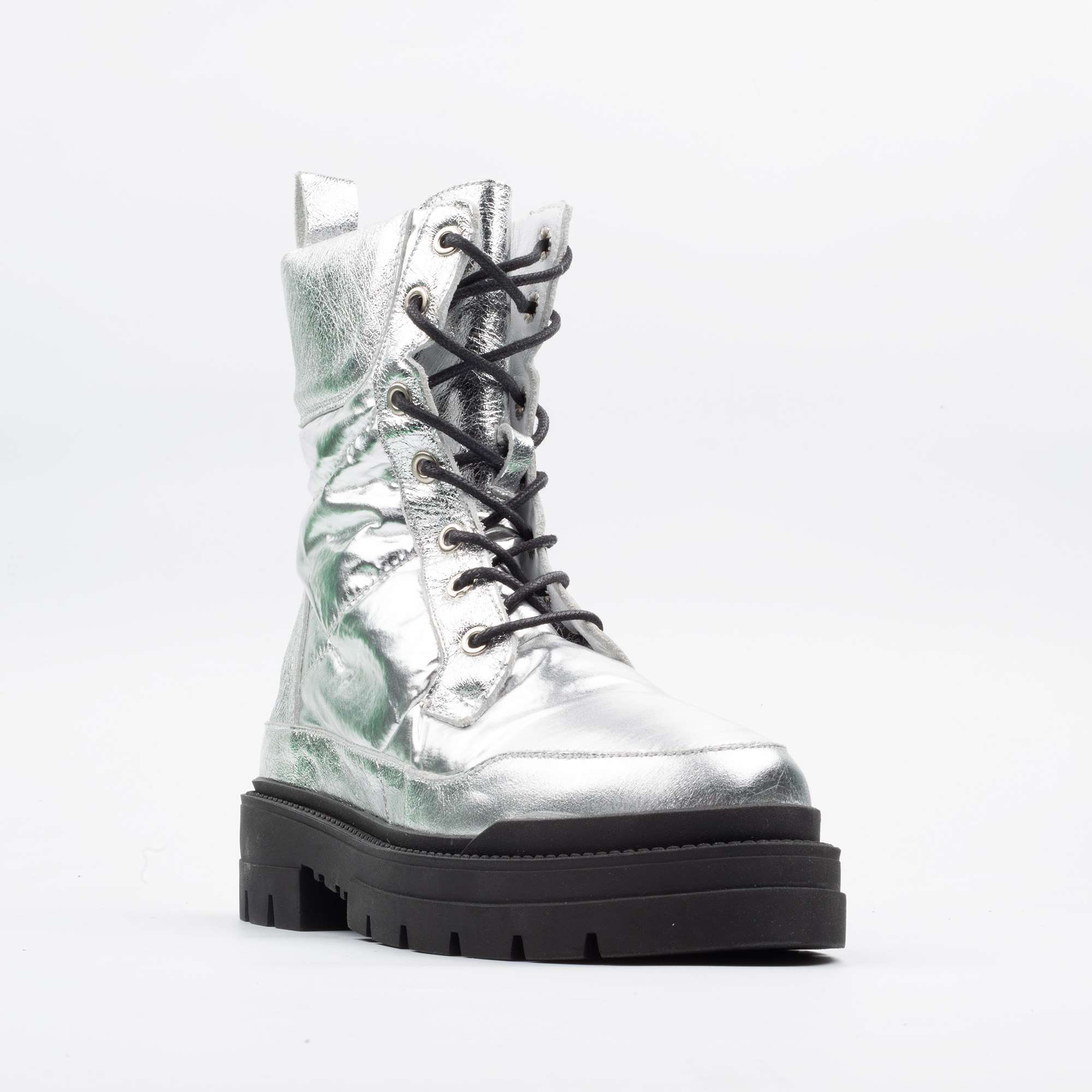 Whether you’re heading out for a night on the town or braving the winter cold, these chunky-soled silver combat boots will make sure you do it in style.