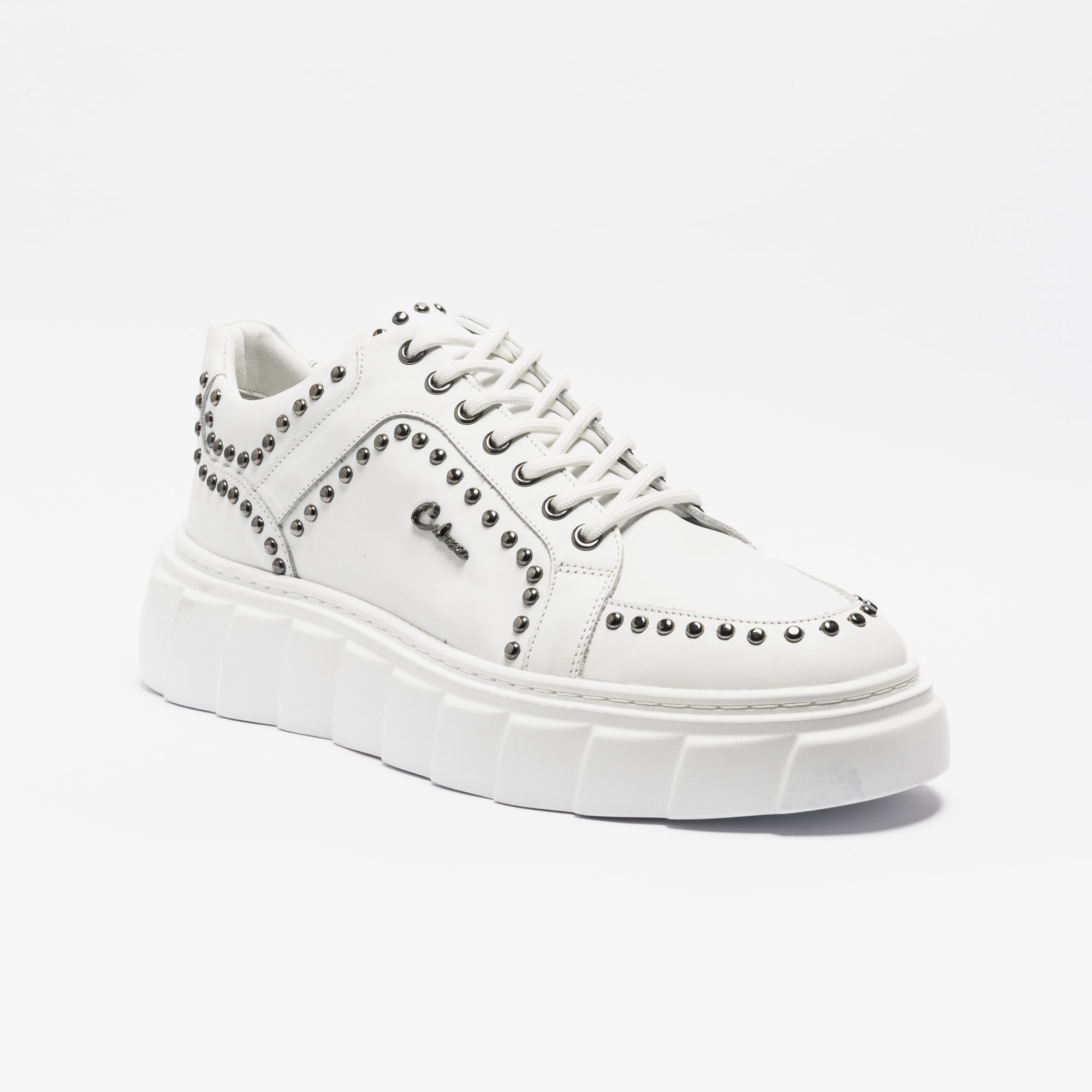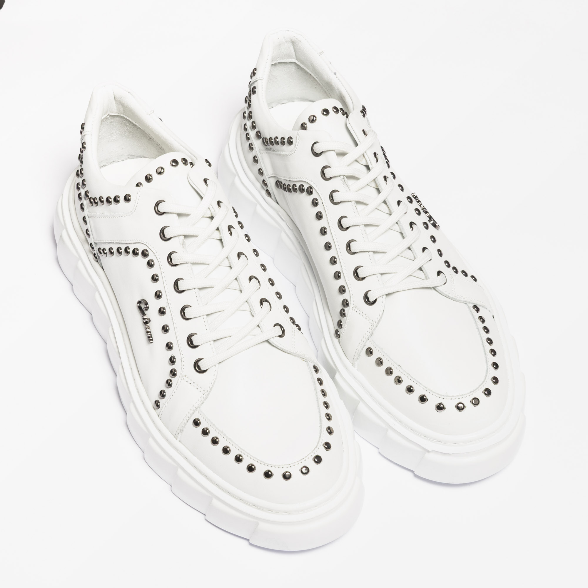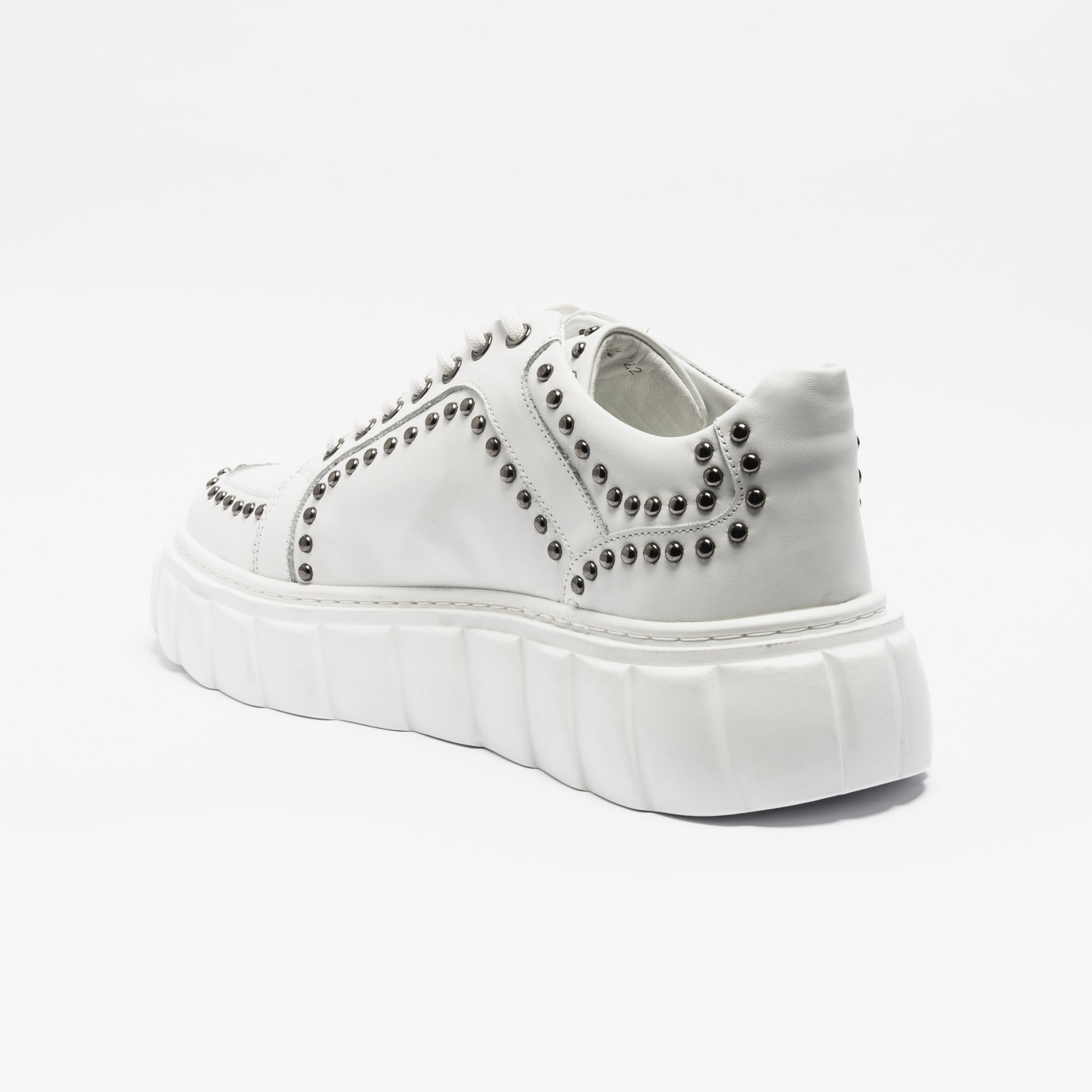 Focus Keyword: white high sole sneakers with stud detailing