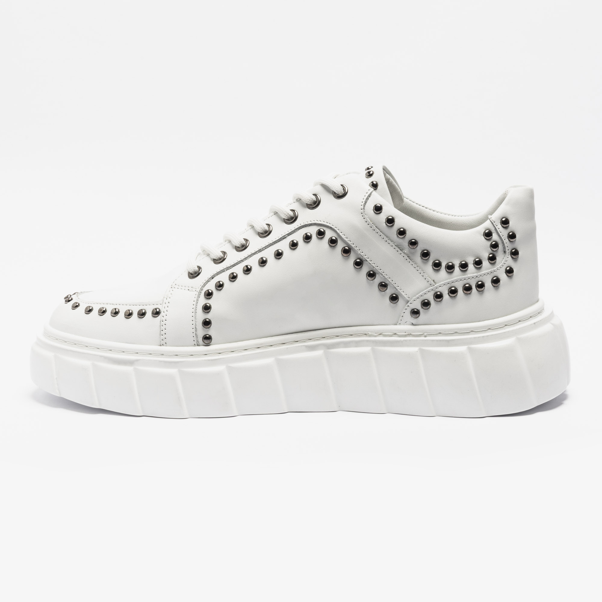 Perfect for fashion-forward individuals who value both aesthetics and practicality, these white high sole sneakers with stud detailing are a must-have addition to your footwear collection. Elevate your casual look effortlessly while enjoying the comfort and durability of premium sneakers. Whether for daily wear, social gatherings, or casual workdays, these sneakers combine style, functionality, and trendiness seamlessly.