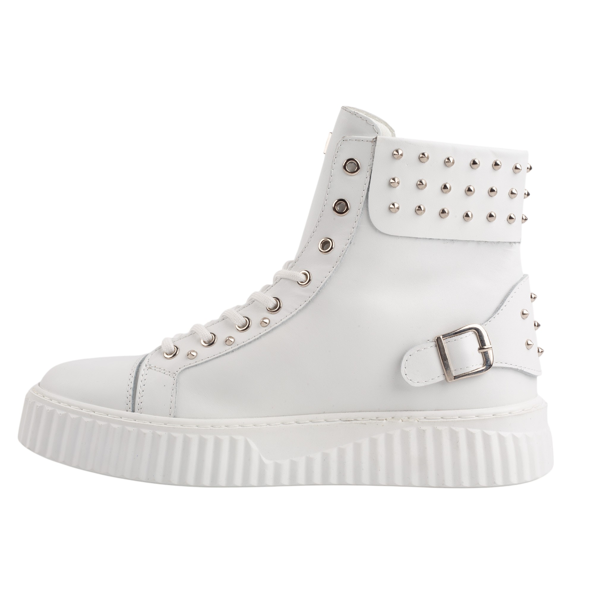 White Leather High Top Sneakers with Metallic Studs Premium Streetwear Statement Footwear for Men